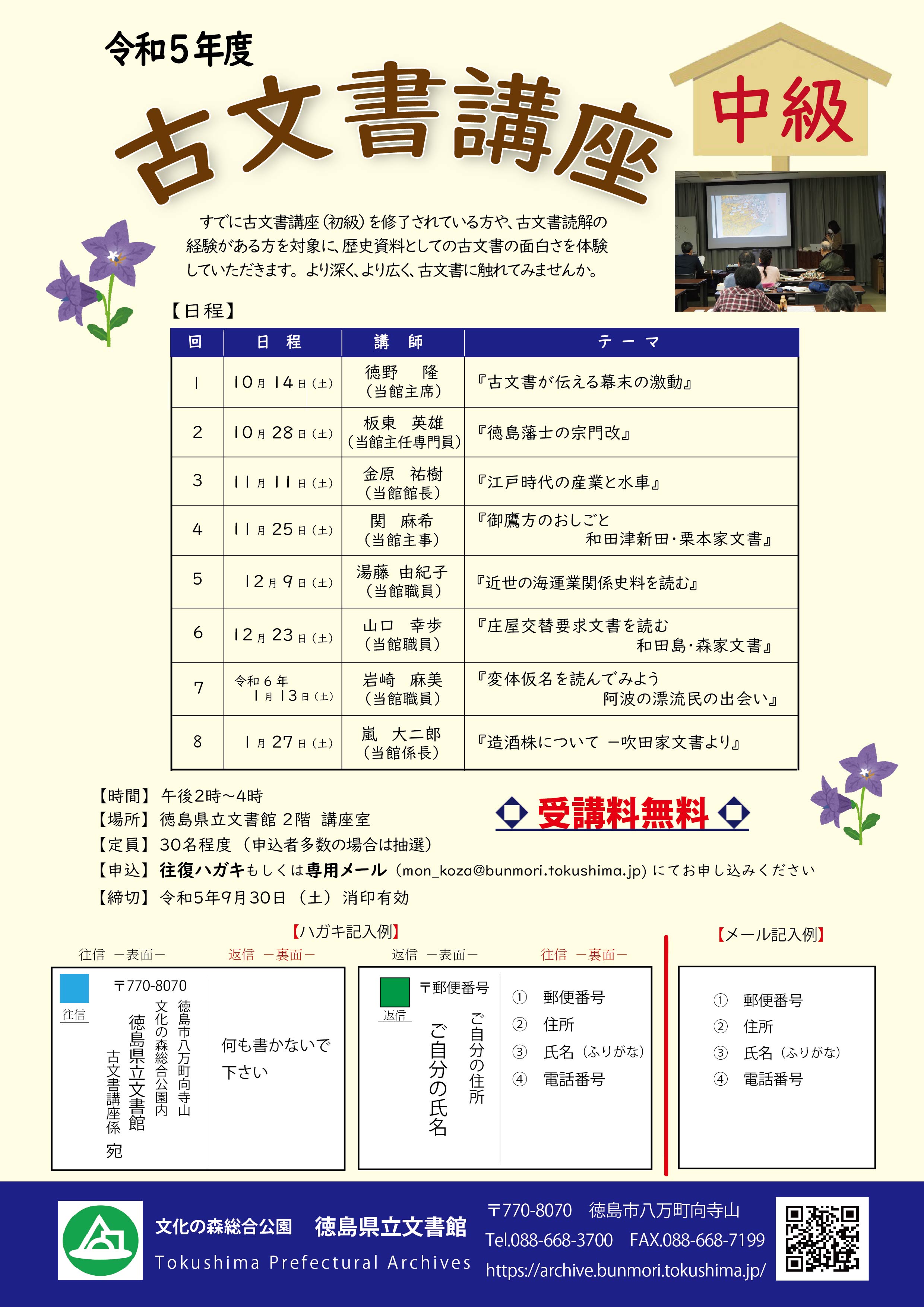場 所 会場:徳島県立文書館 2階 講座室