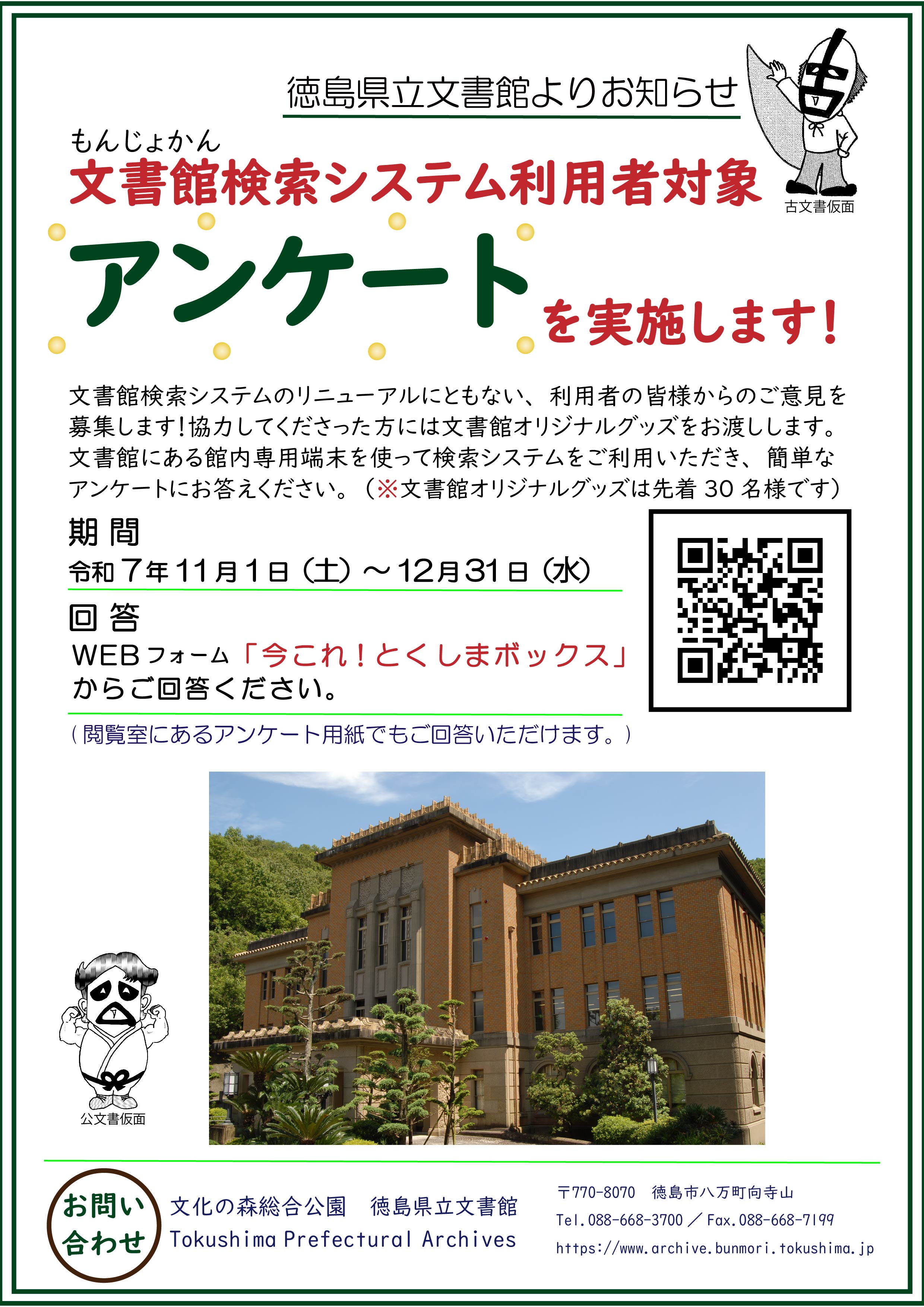 文書館(もんじょかん)内検索システム利用者アンケートにご協力ください