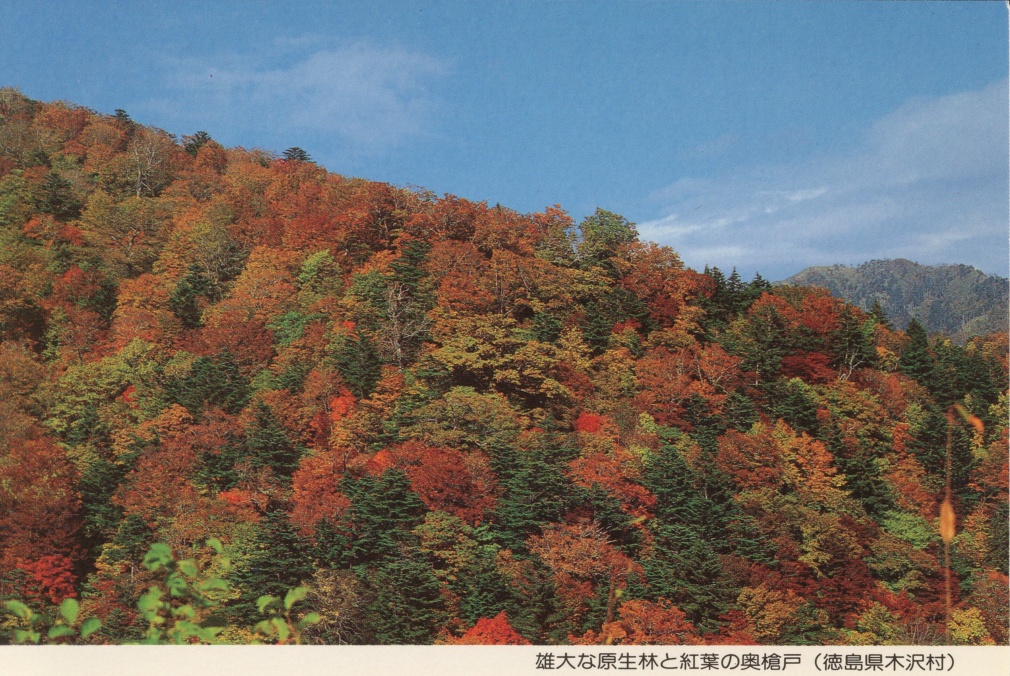 タイトル:『雄大な原生林と紅葉の奥槍戸』