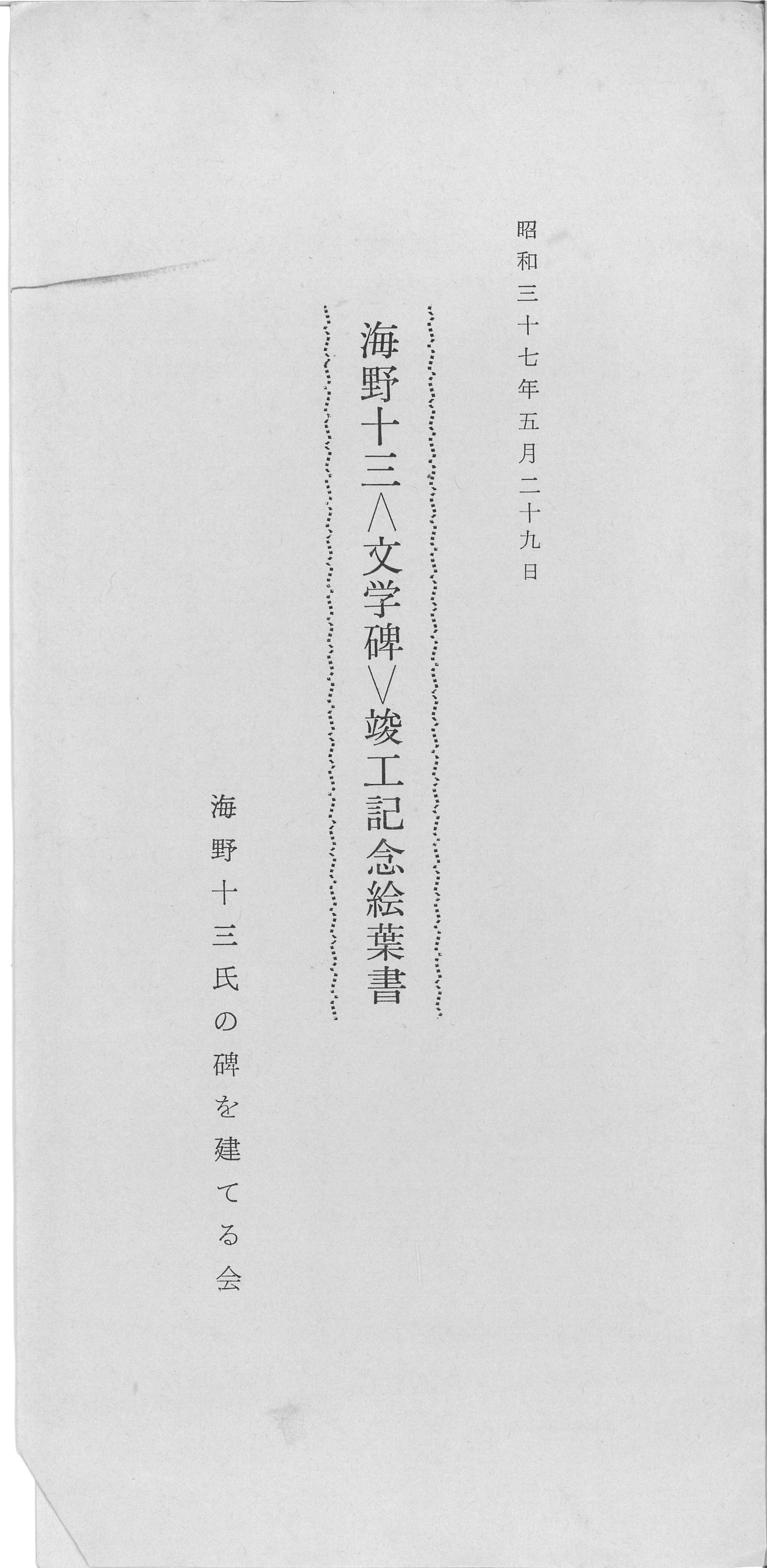 タイトル:『海野十三文学碑竣工記念絵葉書(封筒)』