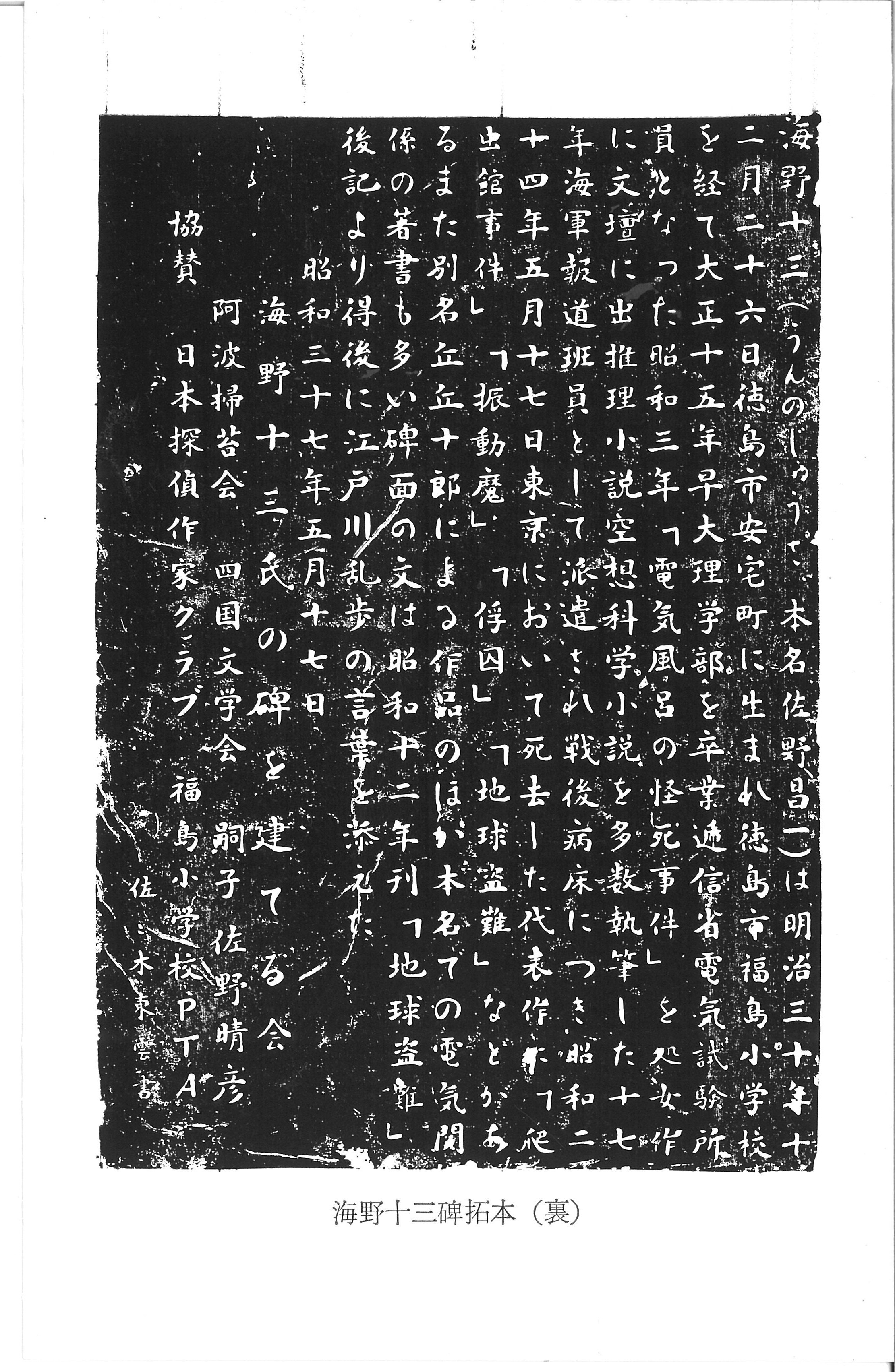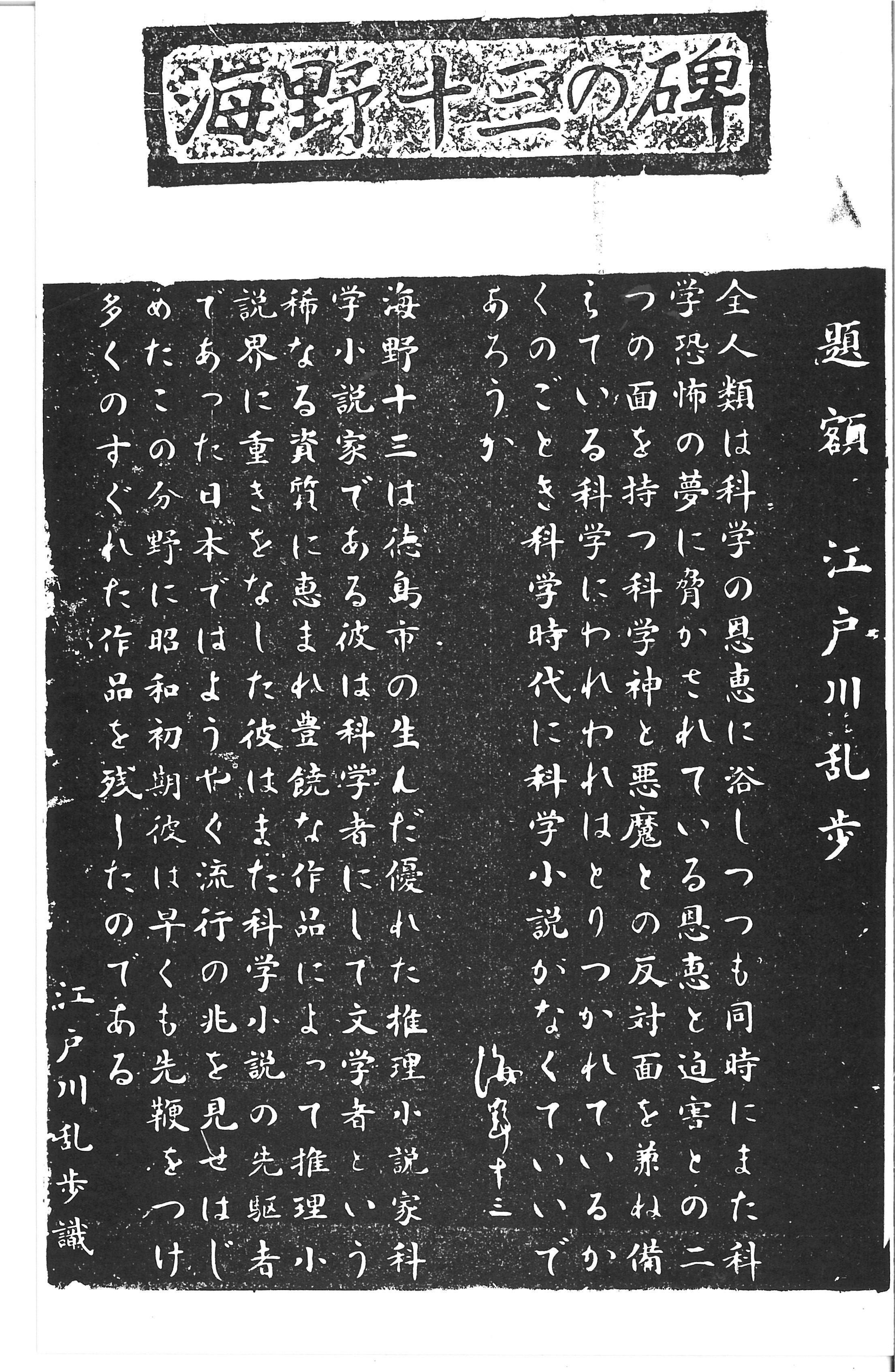 タイトル:『海野十三碑碑面拓本』