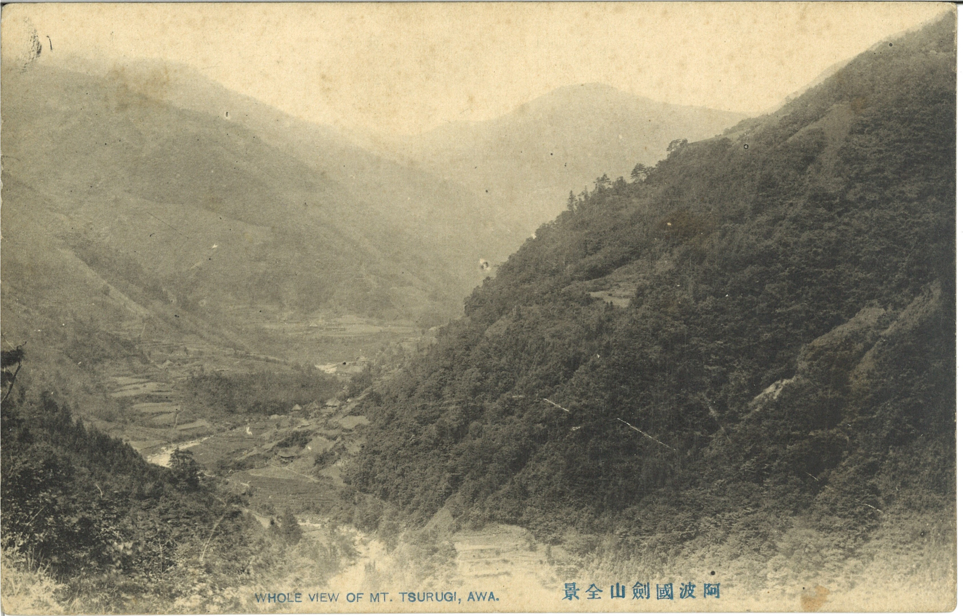 タイトル:『徳島県三好郡吉野川北岸より池田町及び諏訪公園を望む』