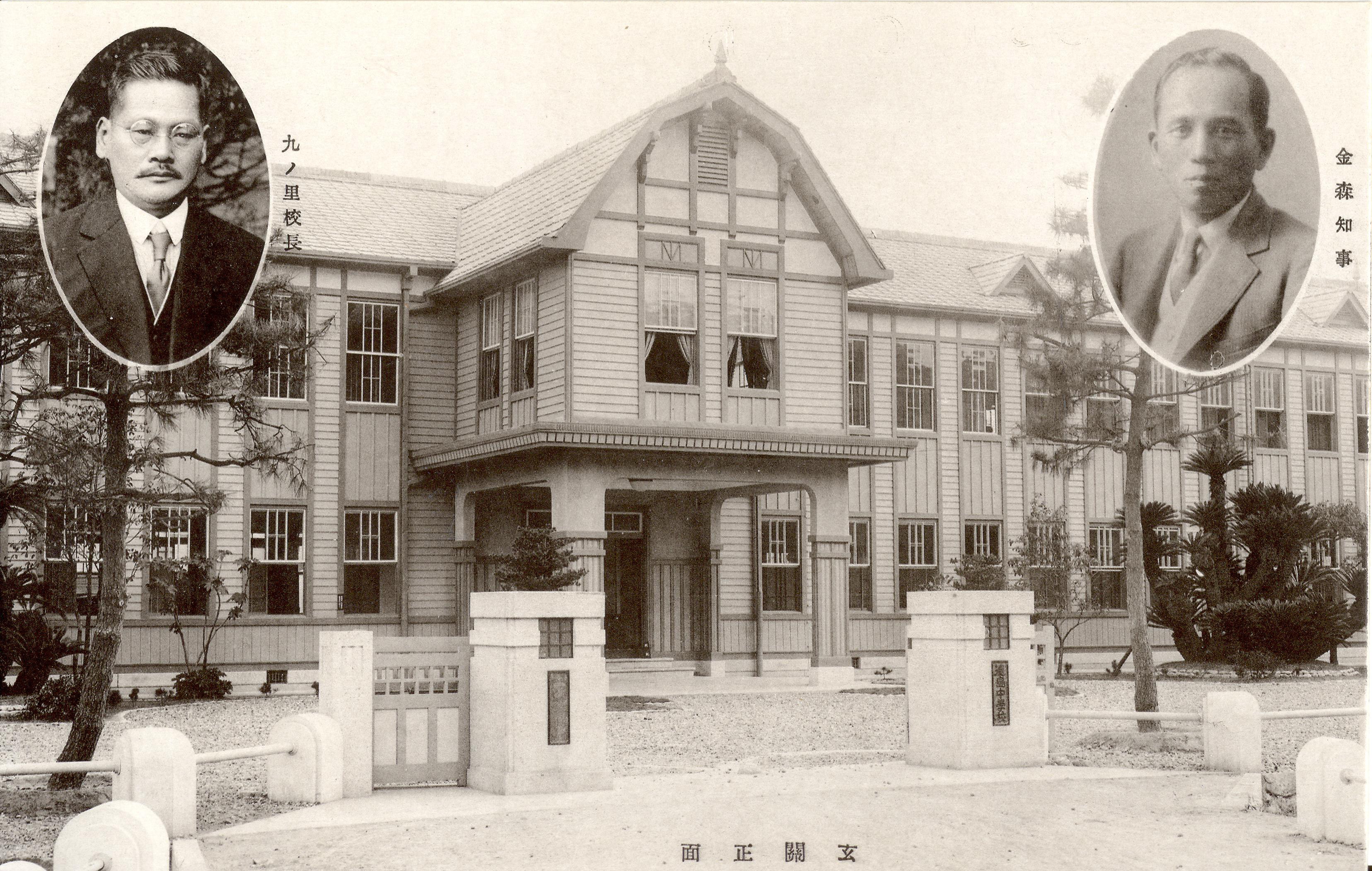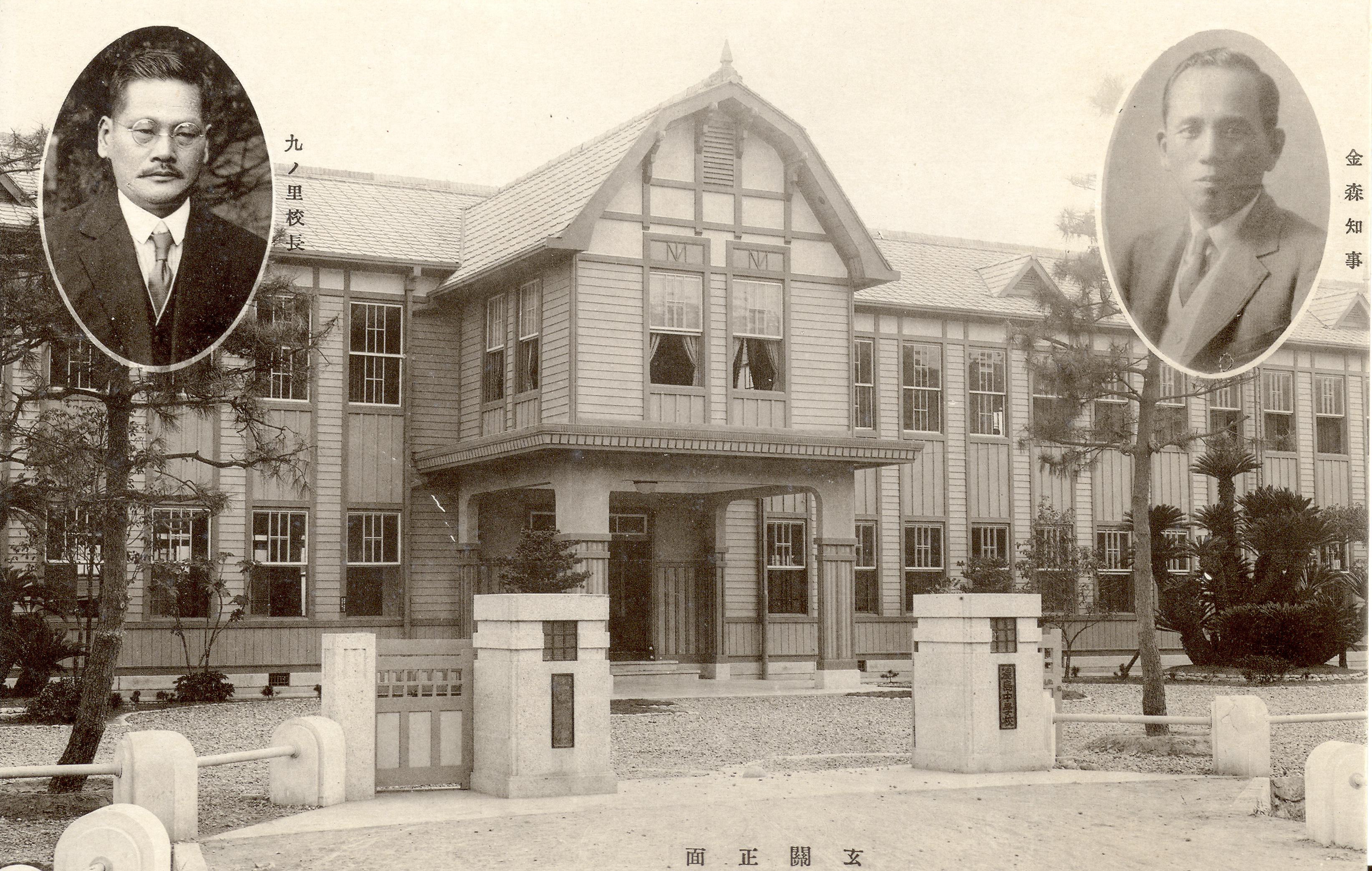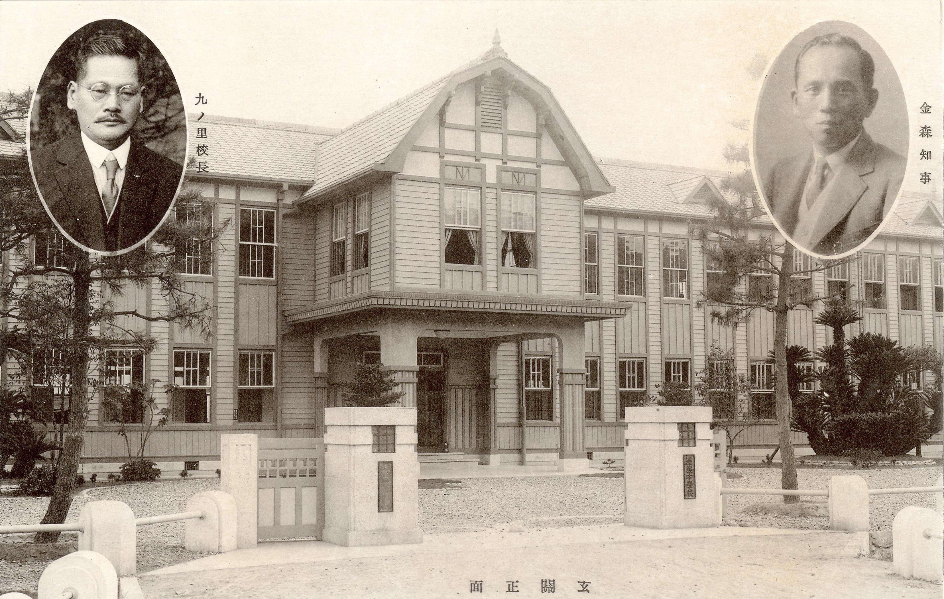 タイトル:『九ノ里校長・金森知事・玄関正面③』