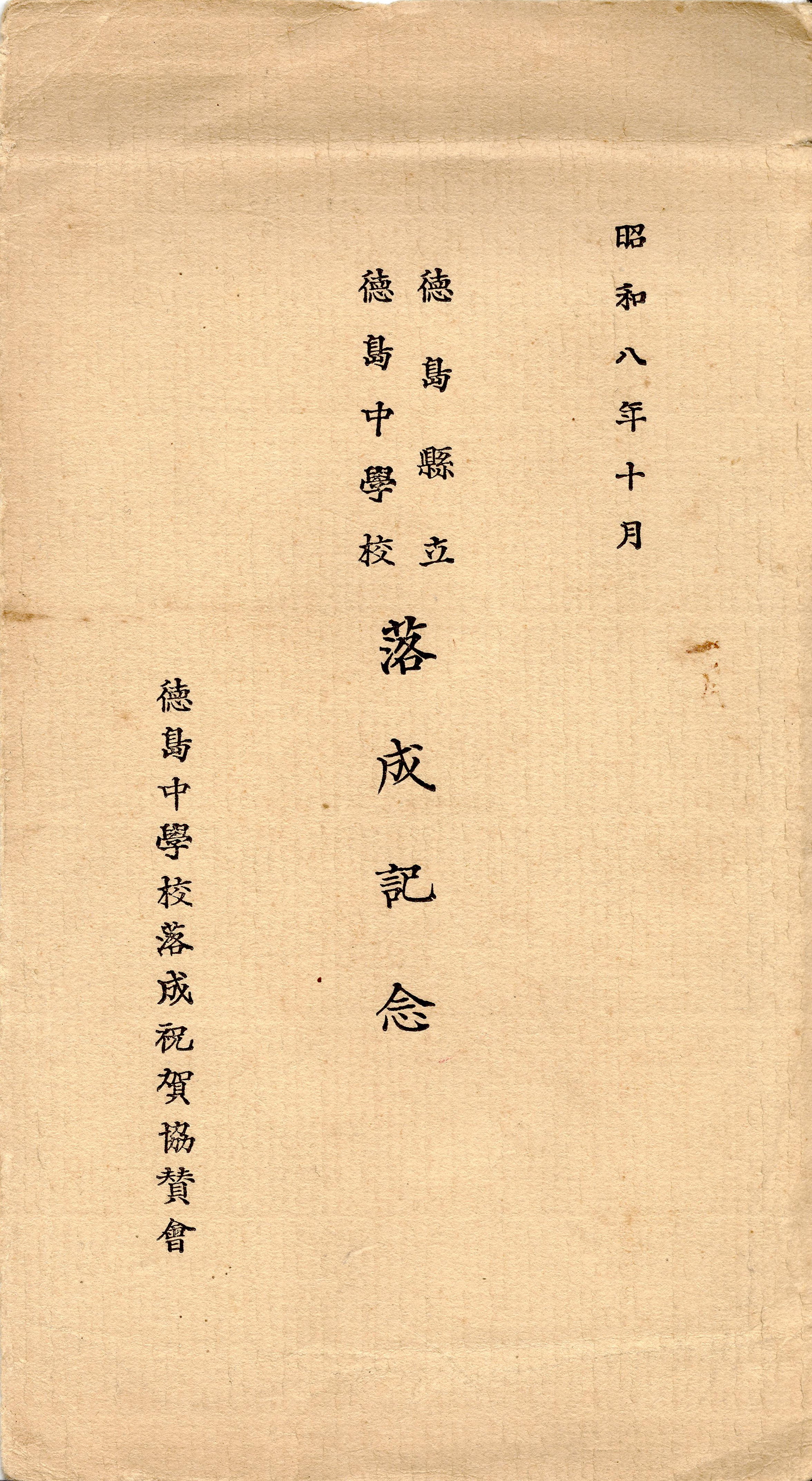 タイトル:『徳島県立徳島中学校落成記念(袋)②』
