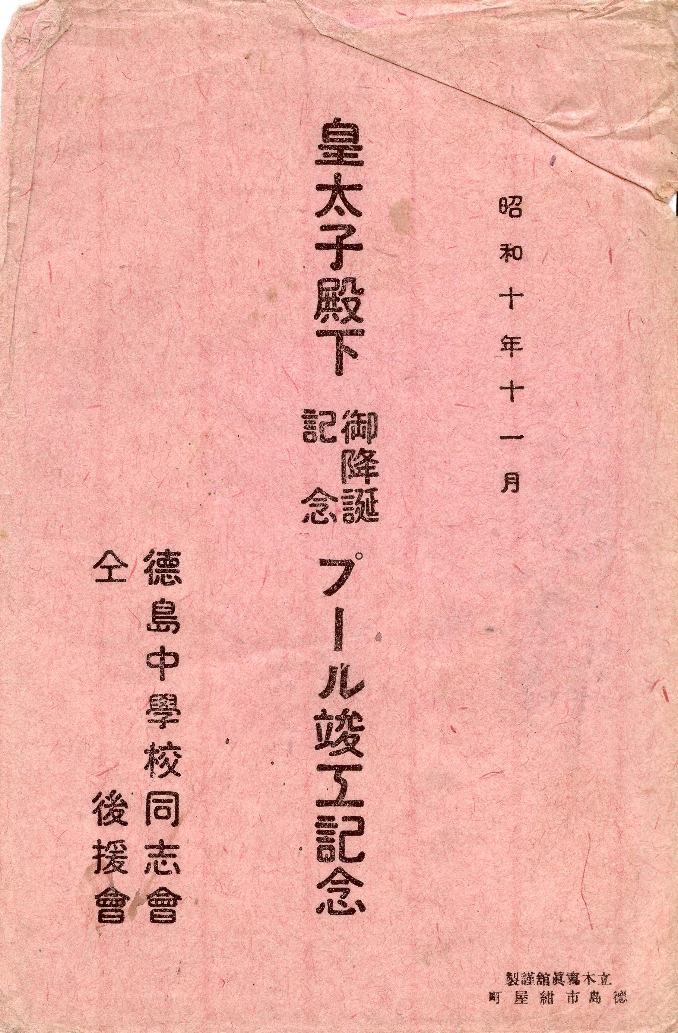 タイトル:『皇太子殿下御降誕記念プール竣工記念(袋)』