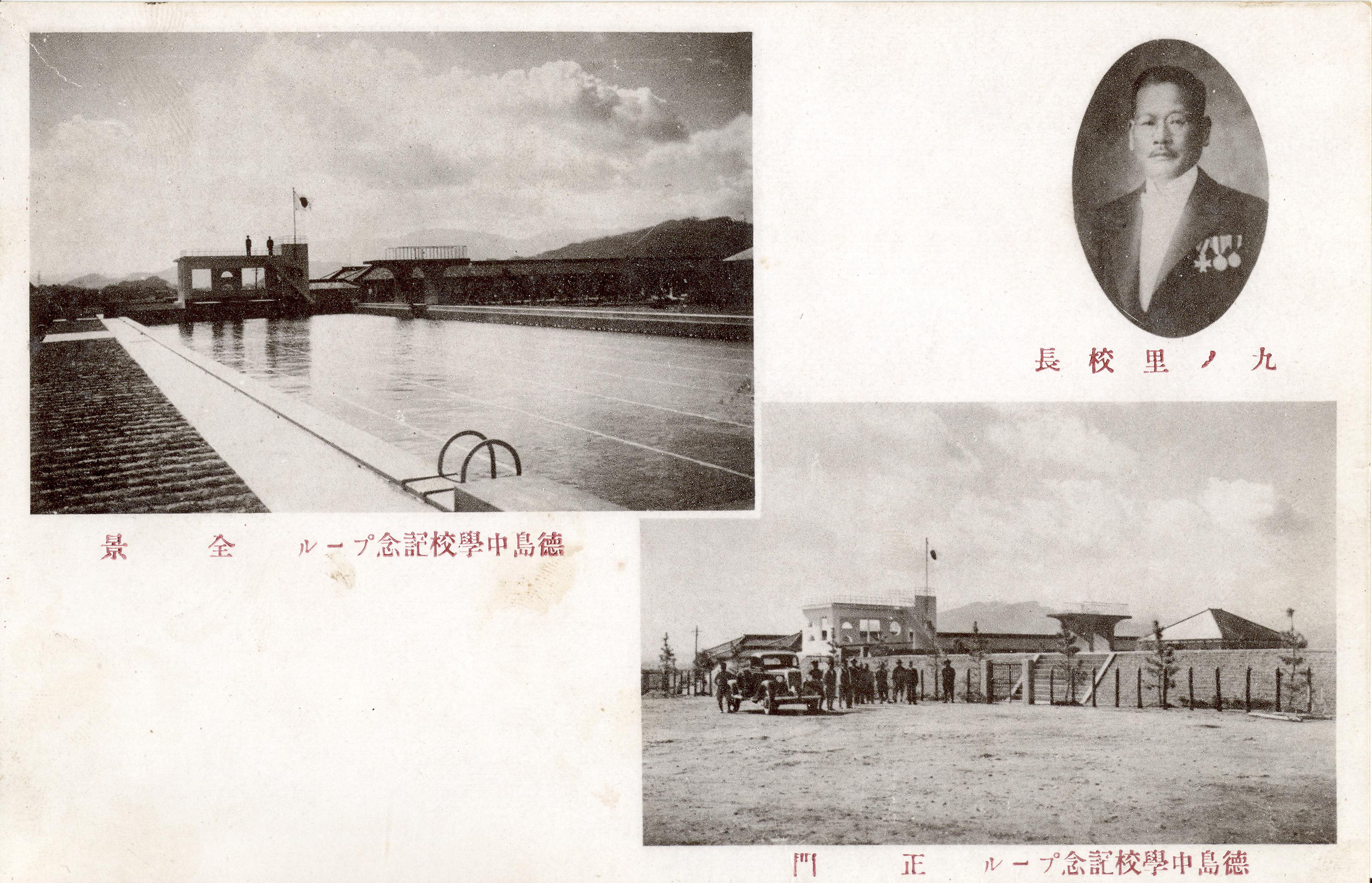 タイトル:『九ノ里校長・徳島中学校記念プール全景・徳島中学校記念プール正門』