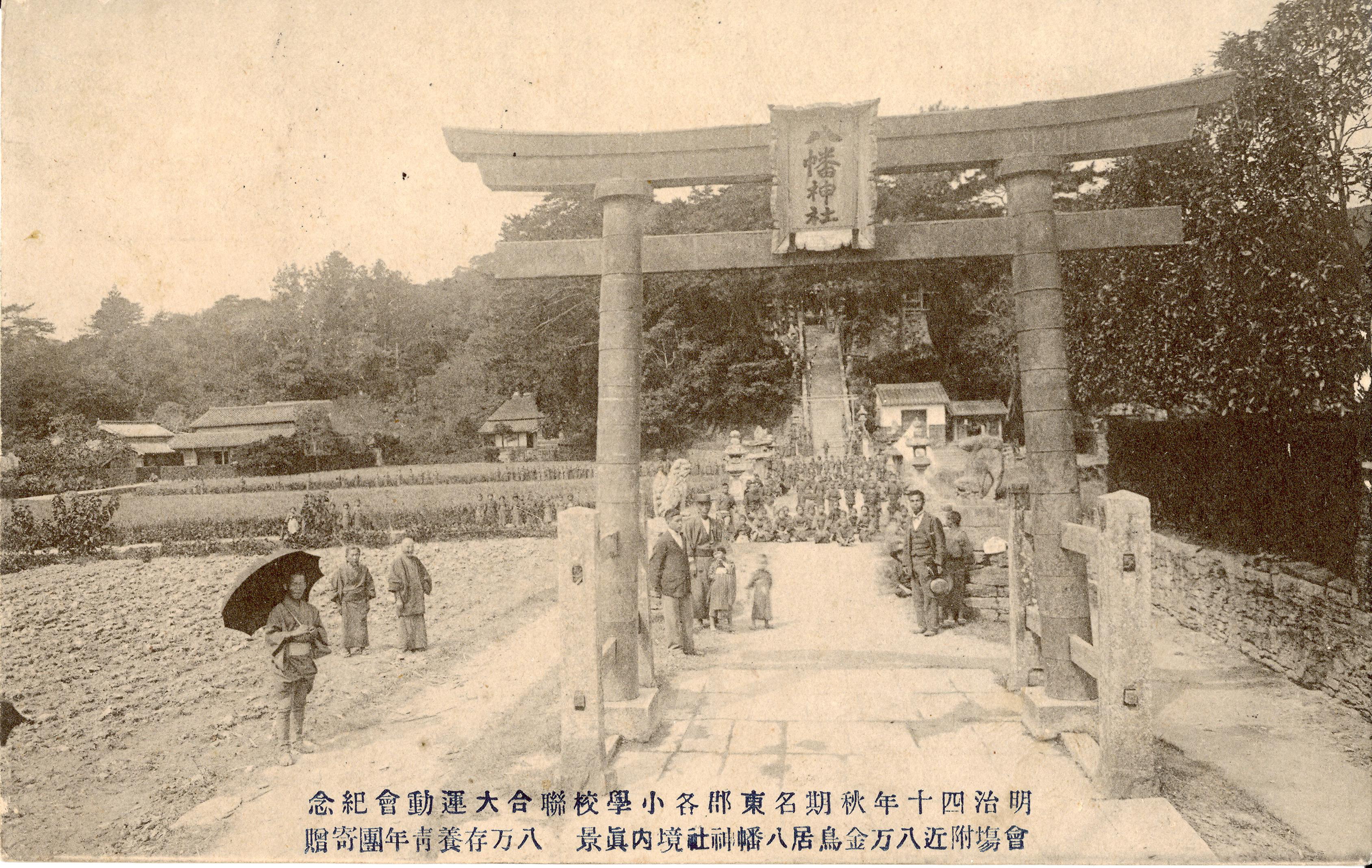 タイトル:『名東郡各小学校総合大運動会記念 会場附近八万金鳥居八幡神社境内真景』