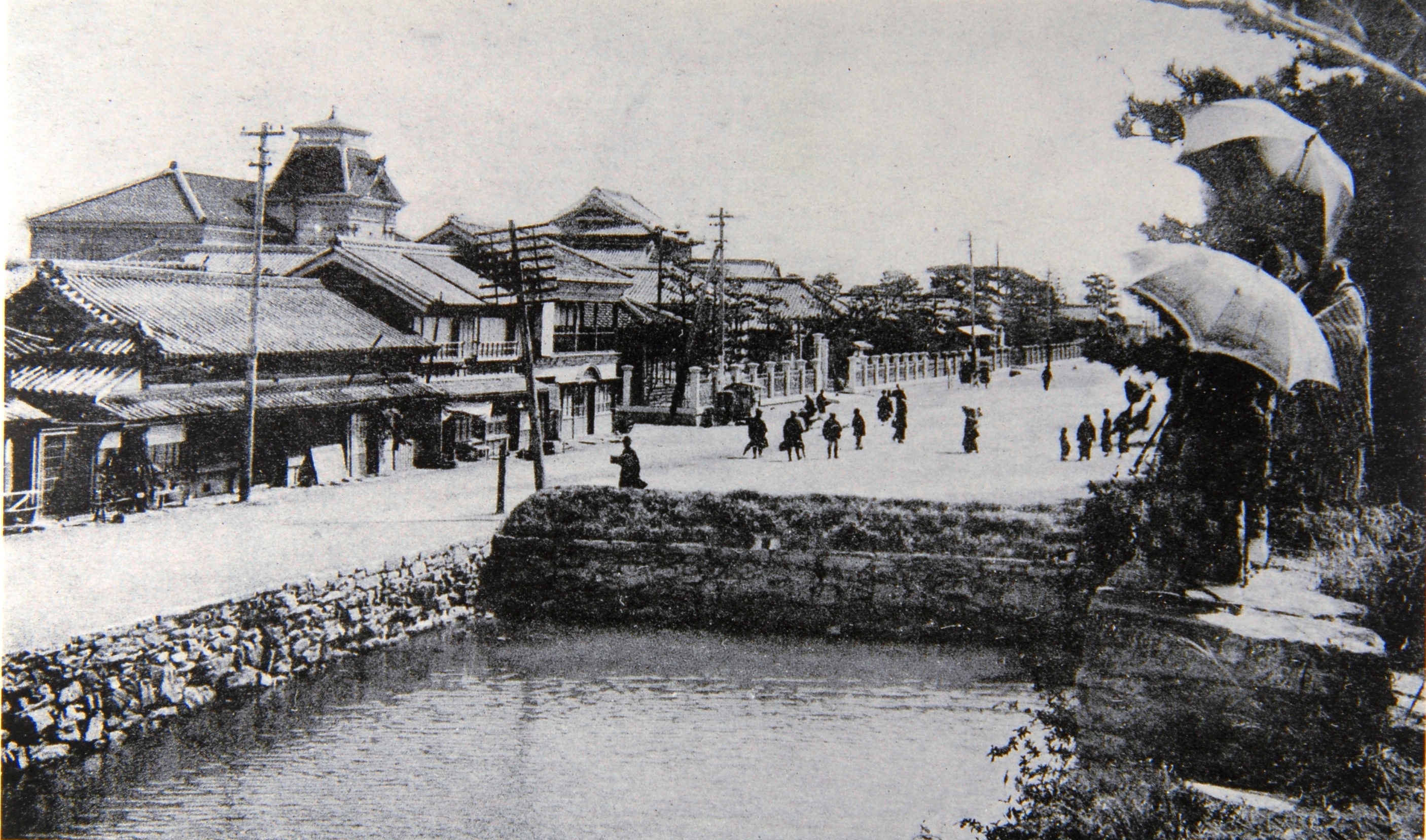 タイトル:『月見櫓から見た堀川と市役所前広場』