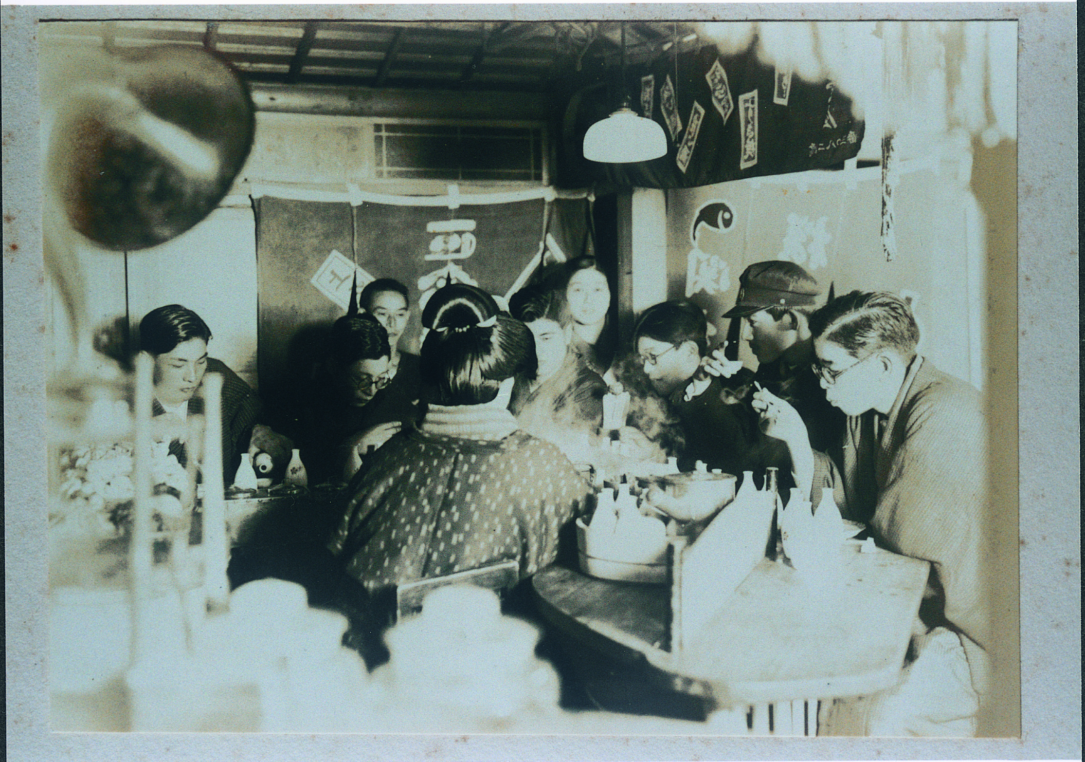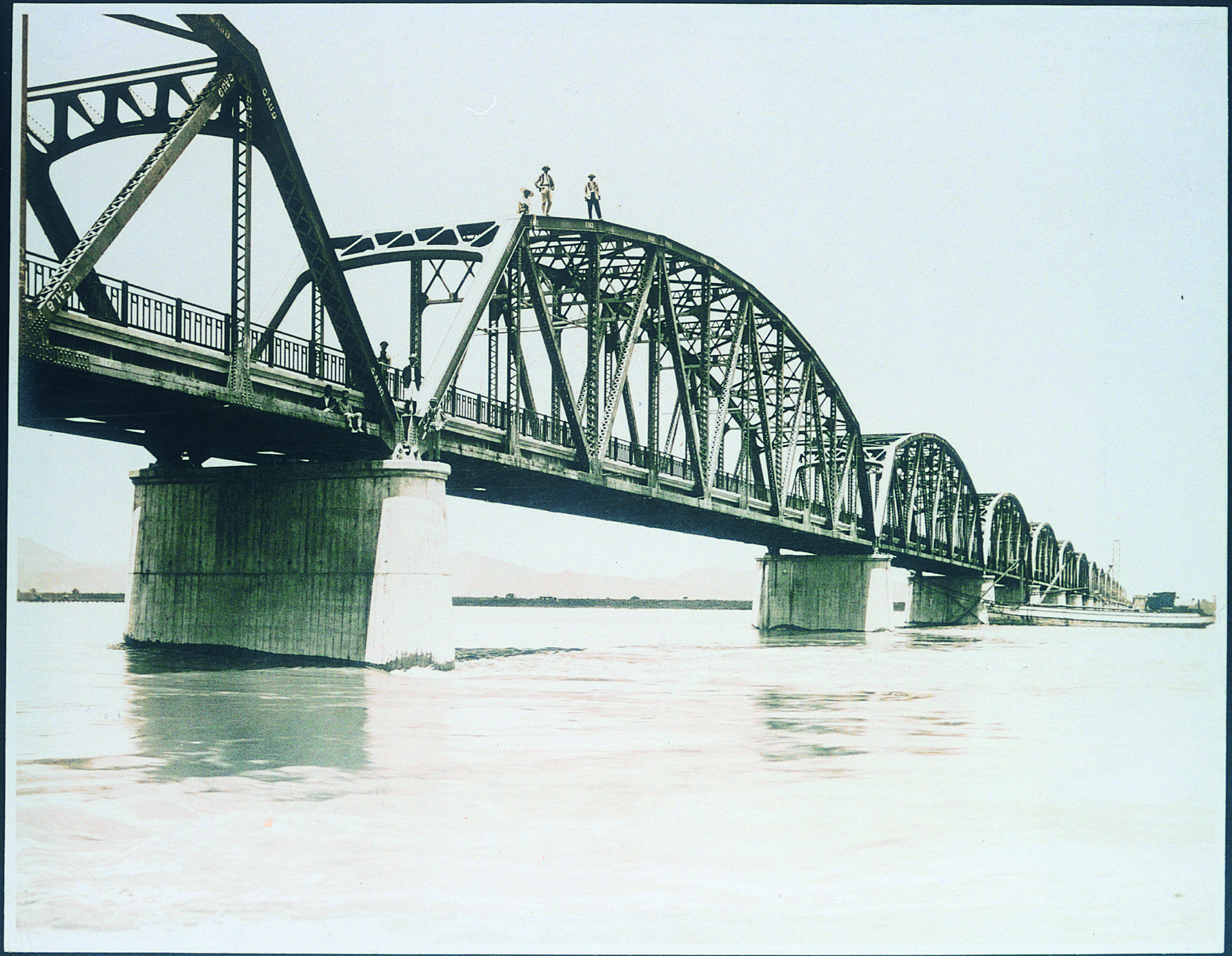 タイトル:『工事関係者及び仮橋流失に付一時通行許可前清め祓い当日神官』