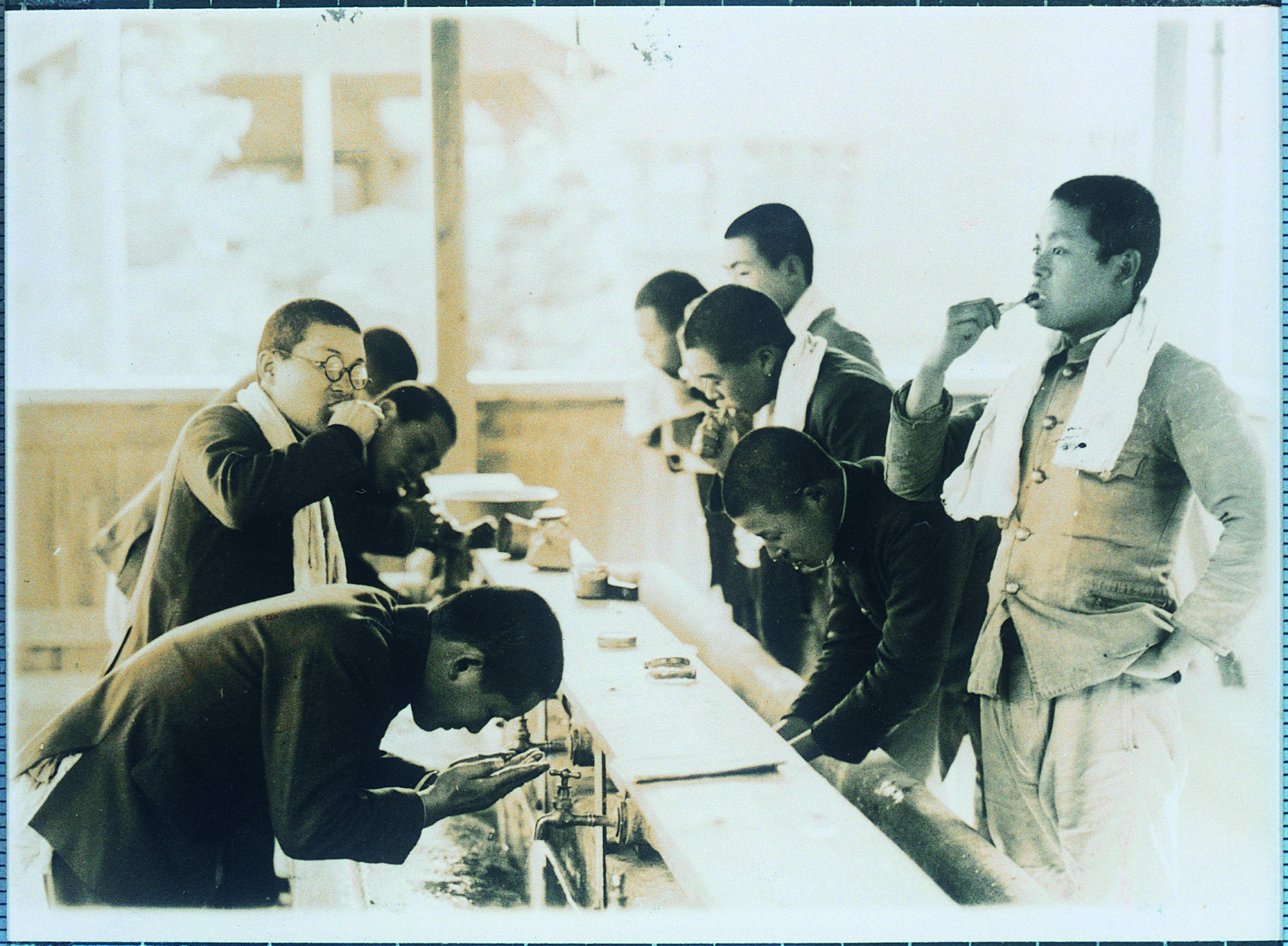 タイトル:『徳島師範学校寄宿舎の朝 洗面風景』