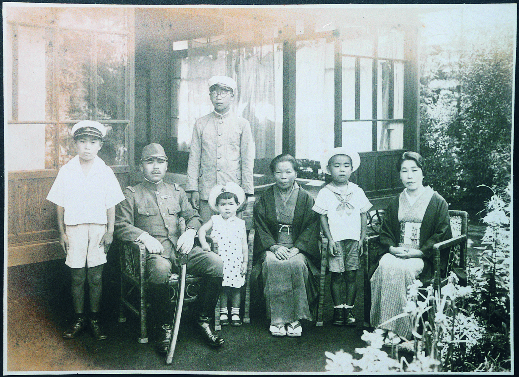 タイトル:『出征記念 庭で家族と』