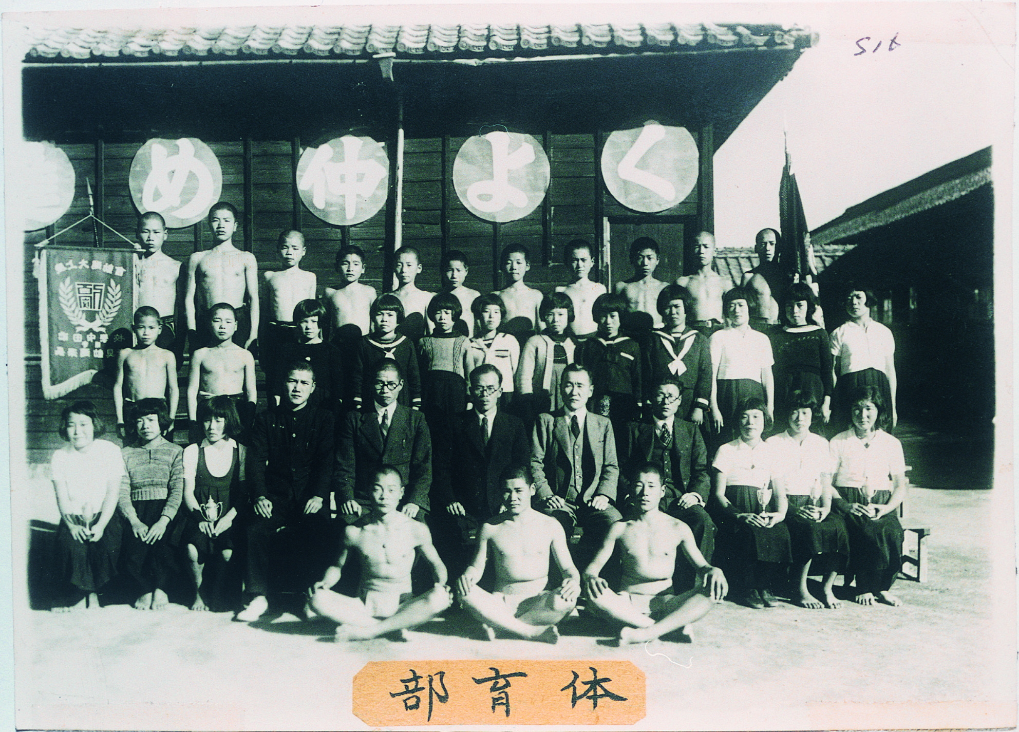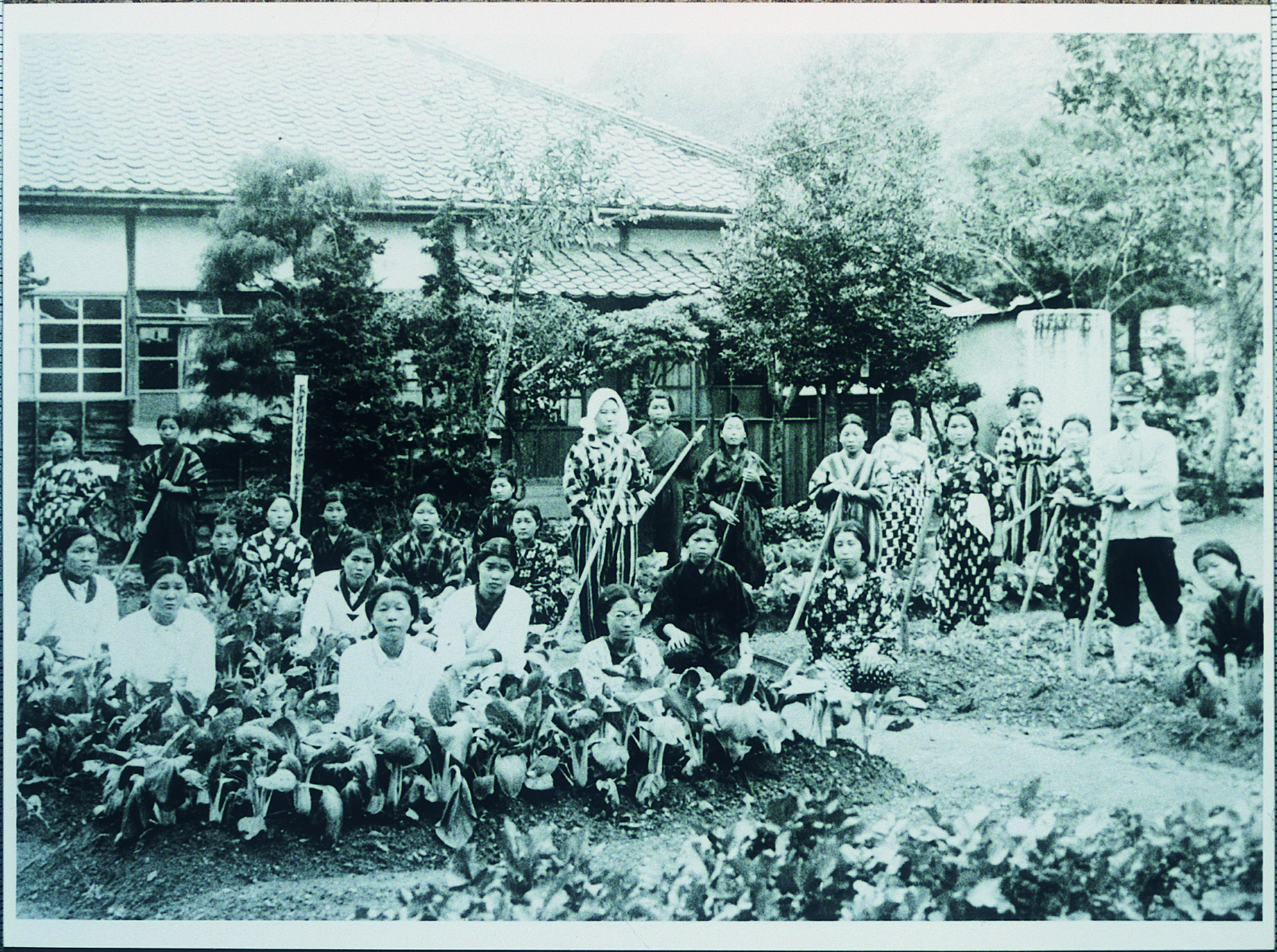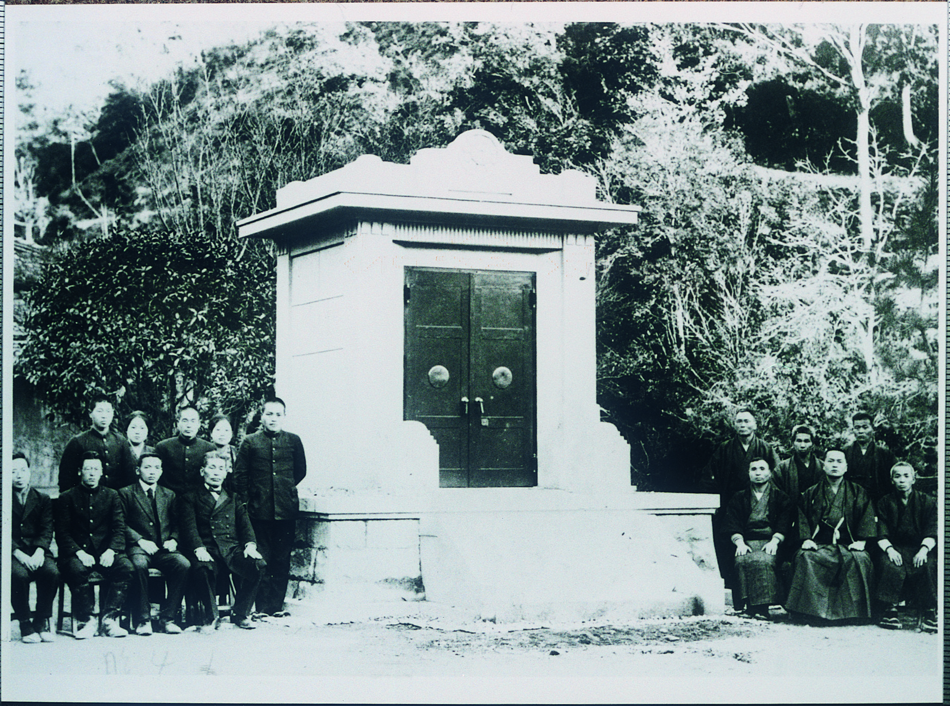 タイトル:『芝生小卒業写真 奉安殿の前で』