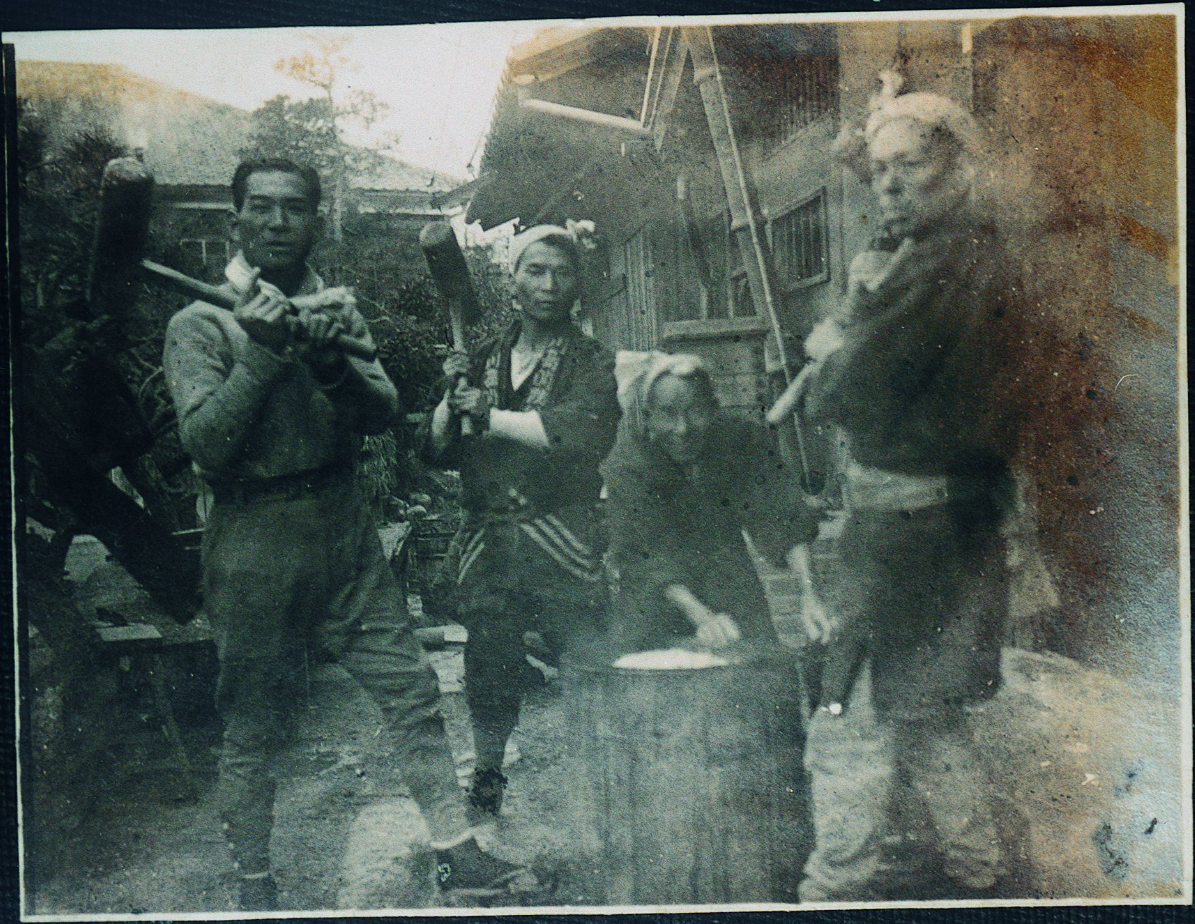 タイトル:『蚕の繭から防寒チョッキを作る婦人会の人々。極寒の中国大陸に赴いた日本兵のため、町内の婦人会が中心となって防寒チョッキが作られた。』
