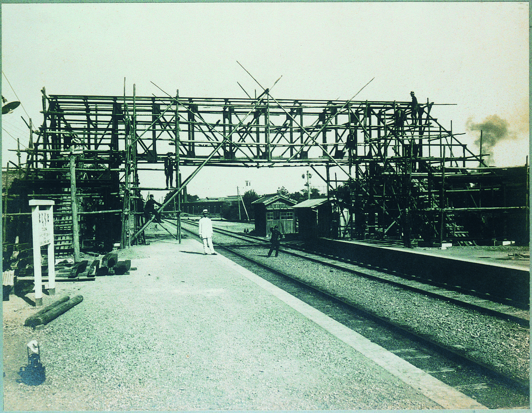 タイトル:『徳島停車場 跨線橋新設工事 鉄骨組立光景』