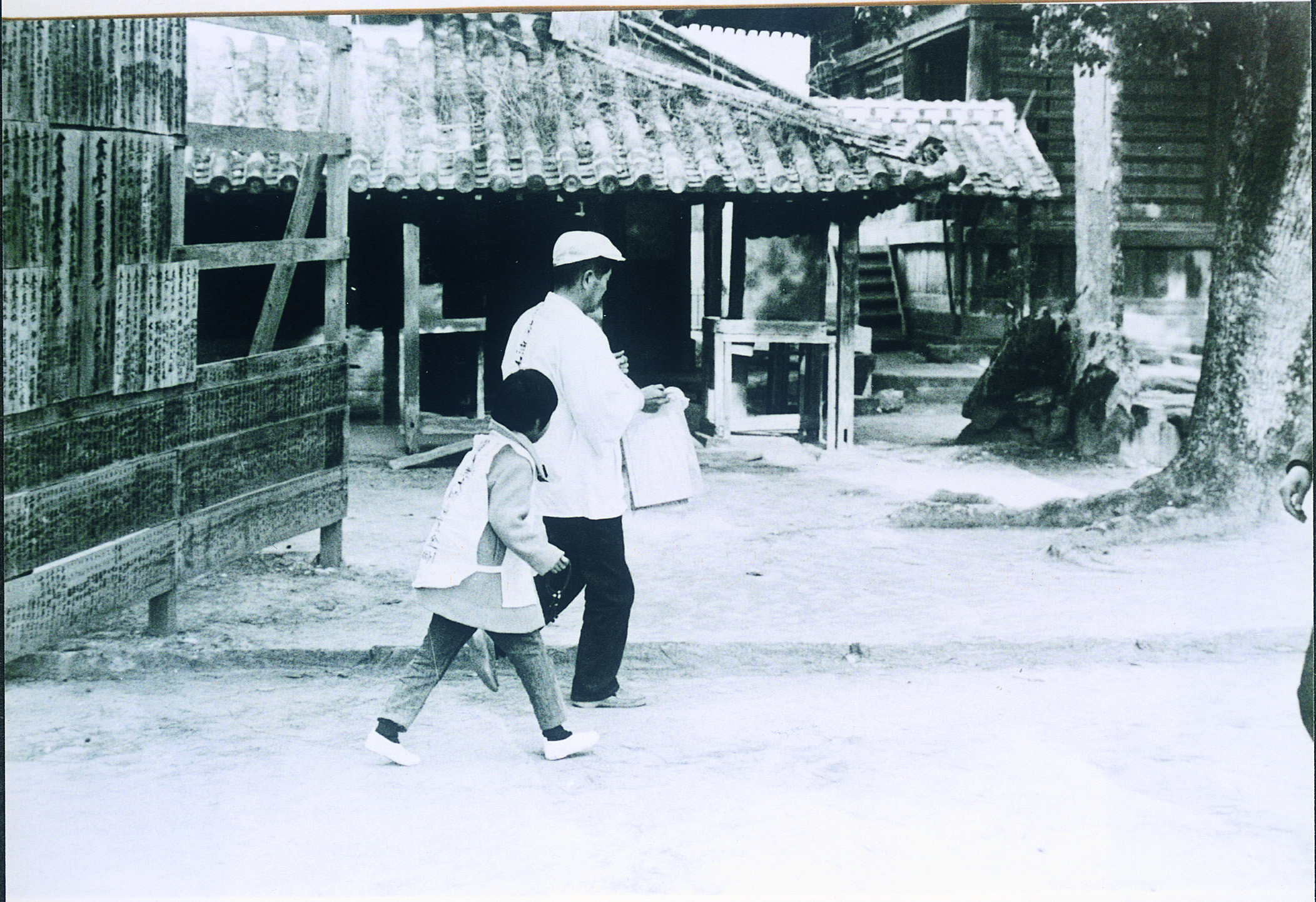 タイトル:『入田校高等科卒業記念に慣例の五カ所まいりをする女生徒』
