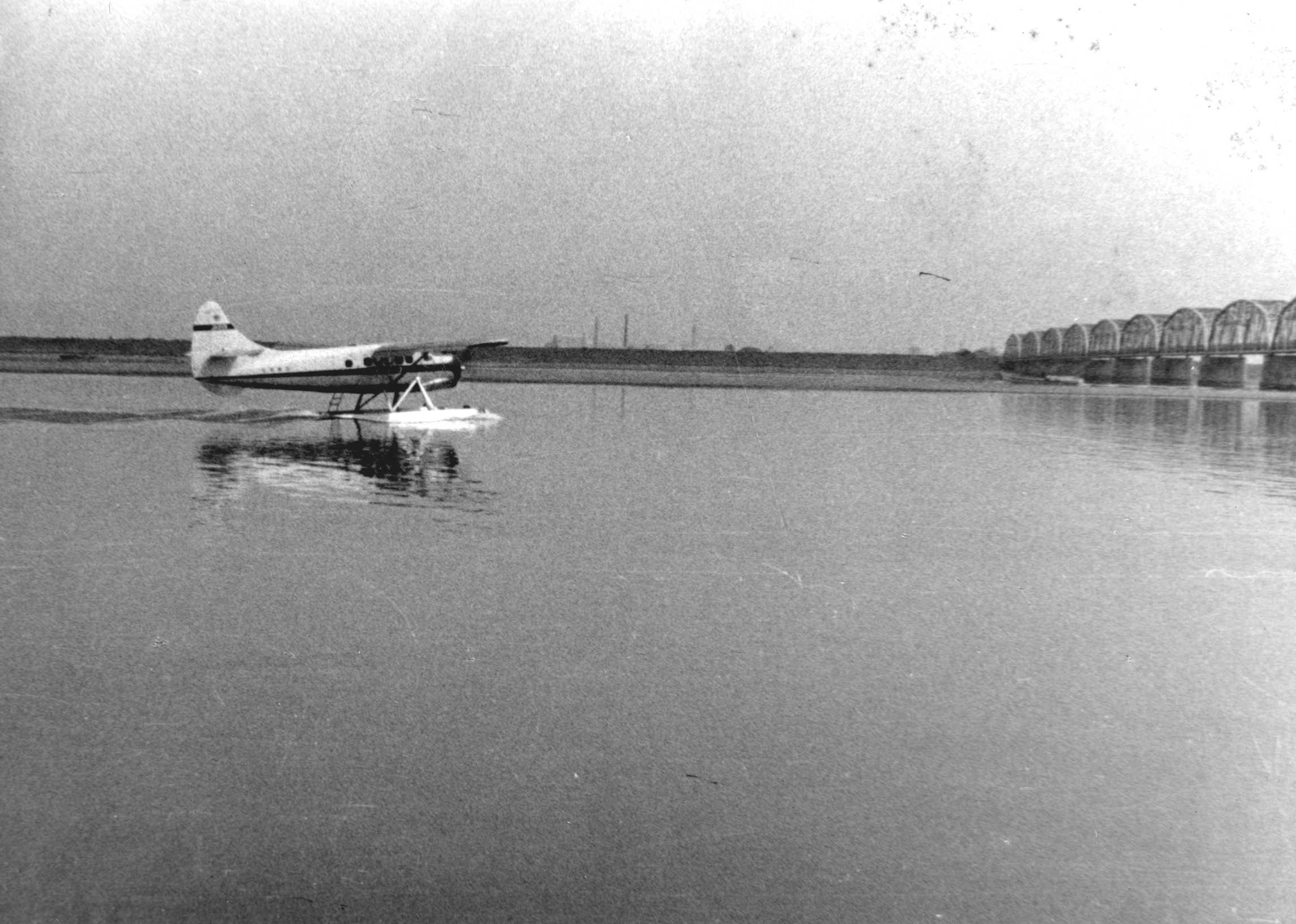 タイトル:『吉野川橋・大阪行きの水上飛行機(6人乗り)』