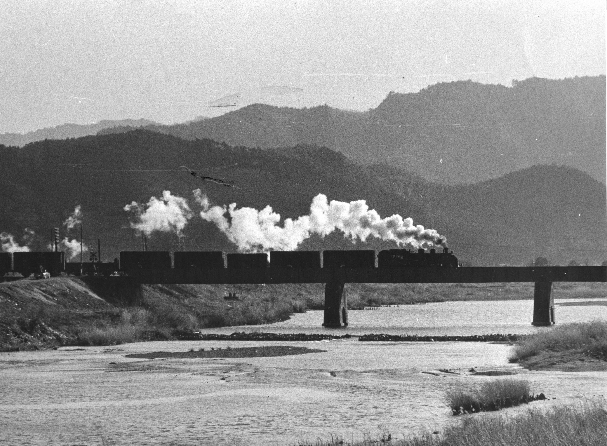 タイトル:『勝浦川橋・貨車をひく蒸気機関車』