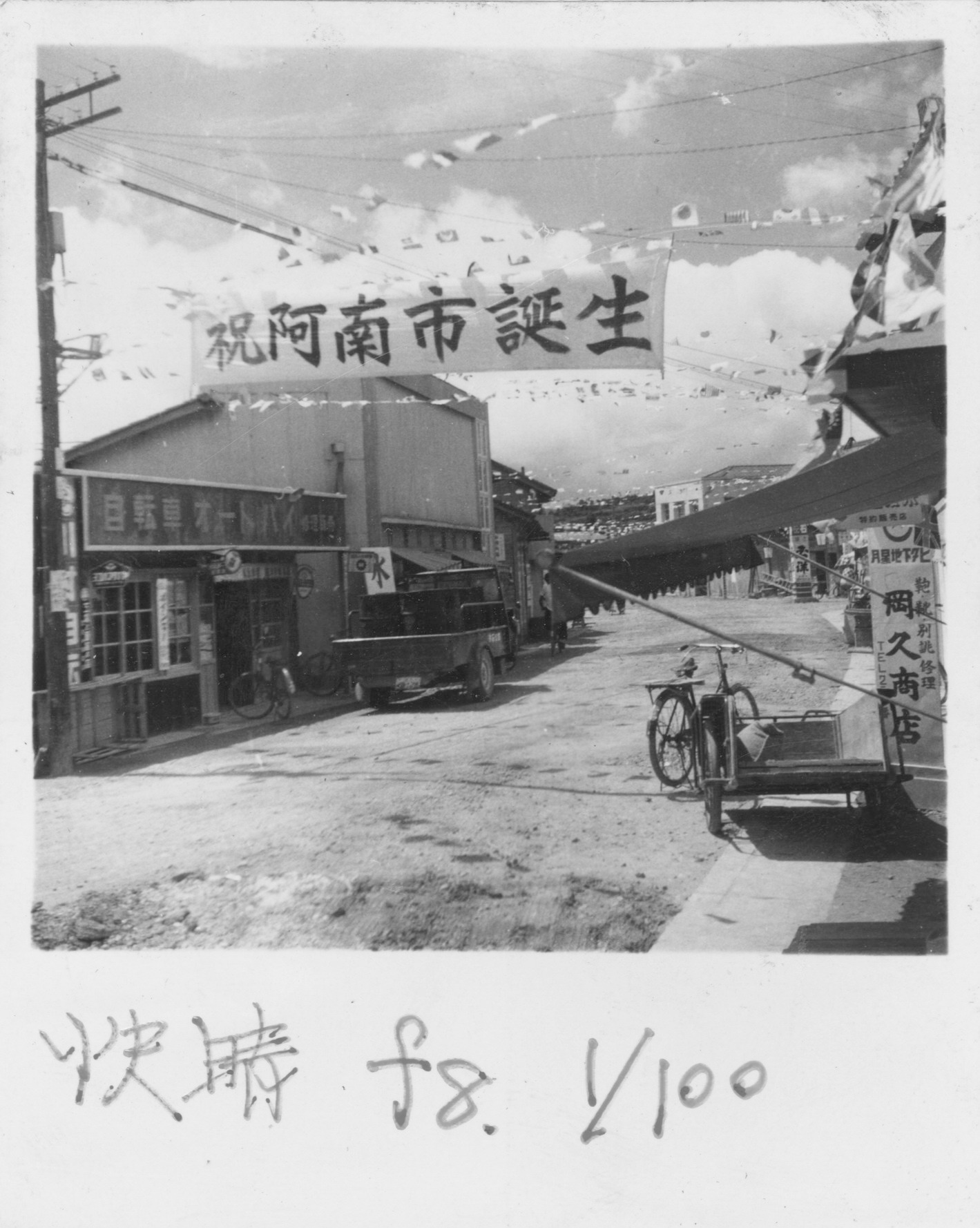 タイトル:『商店街にかかる阿南市誕生を祝う横断幕』