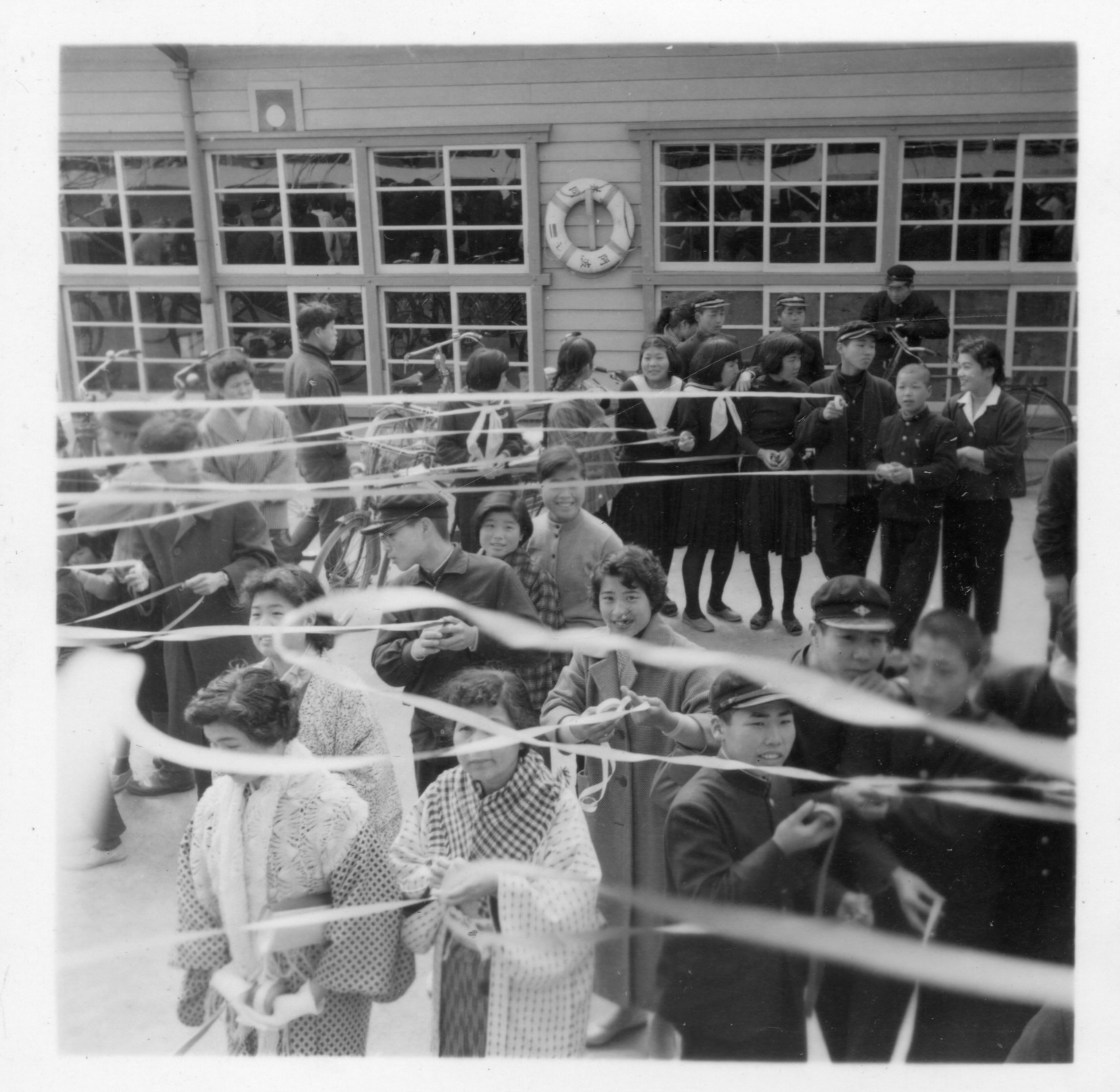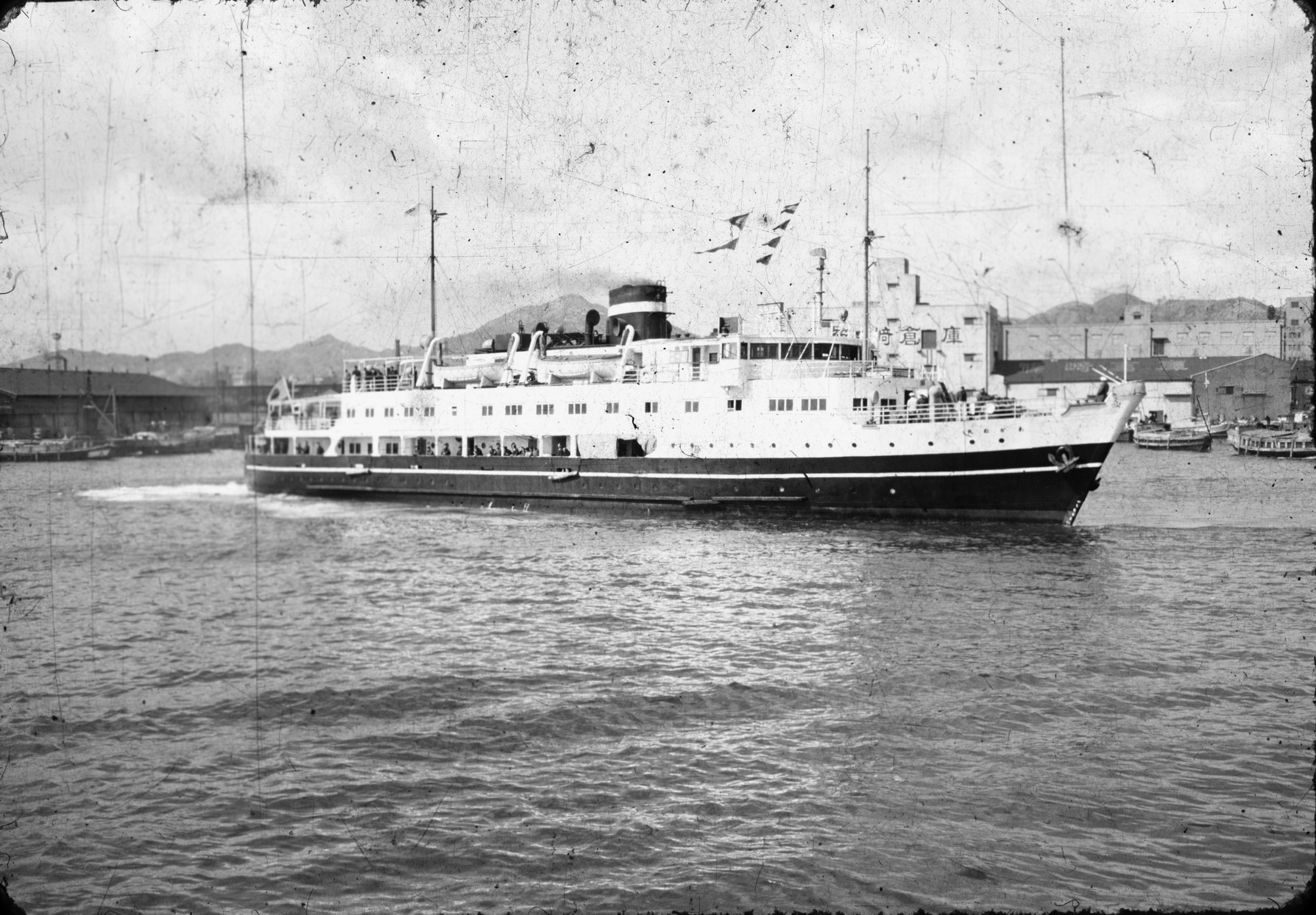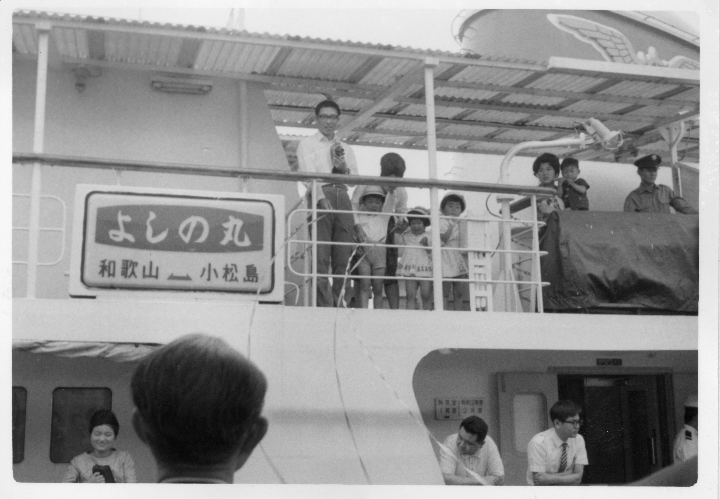 タイトル:『日峰山から小松島市街地を望む・煙突は火力発電所(現市役所)、手前白い建物は日赤』