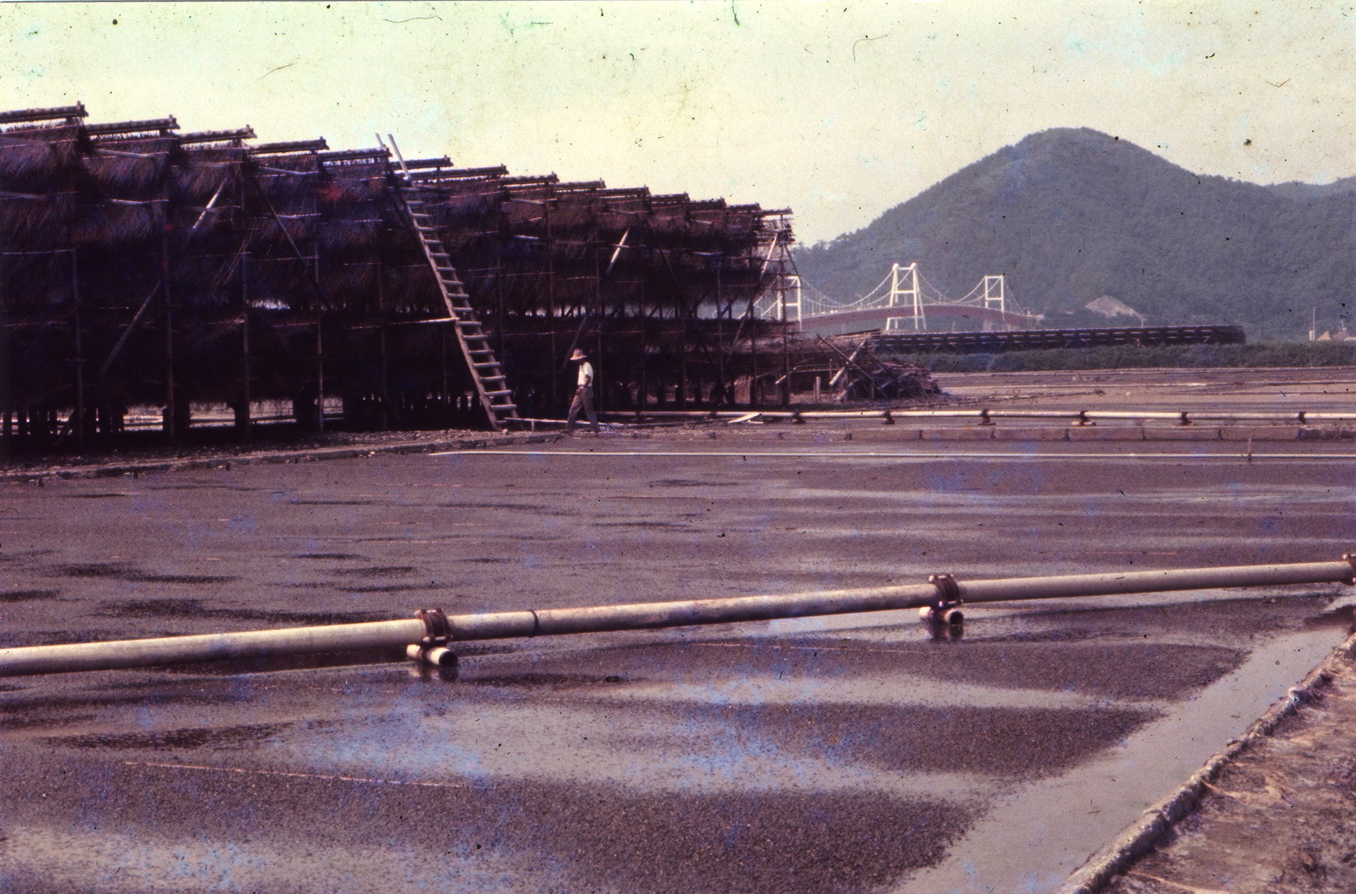 タイトル:『小鳴門橋を背景に流下式塩田の風景』