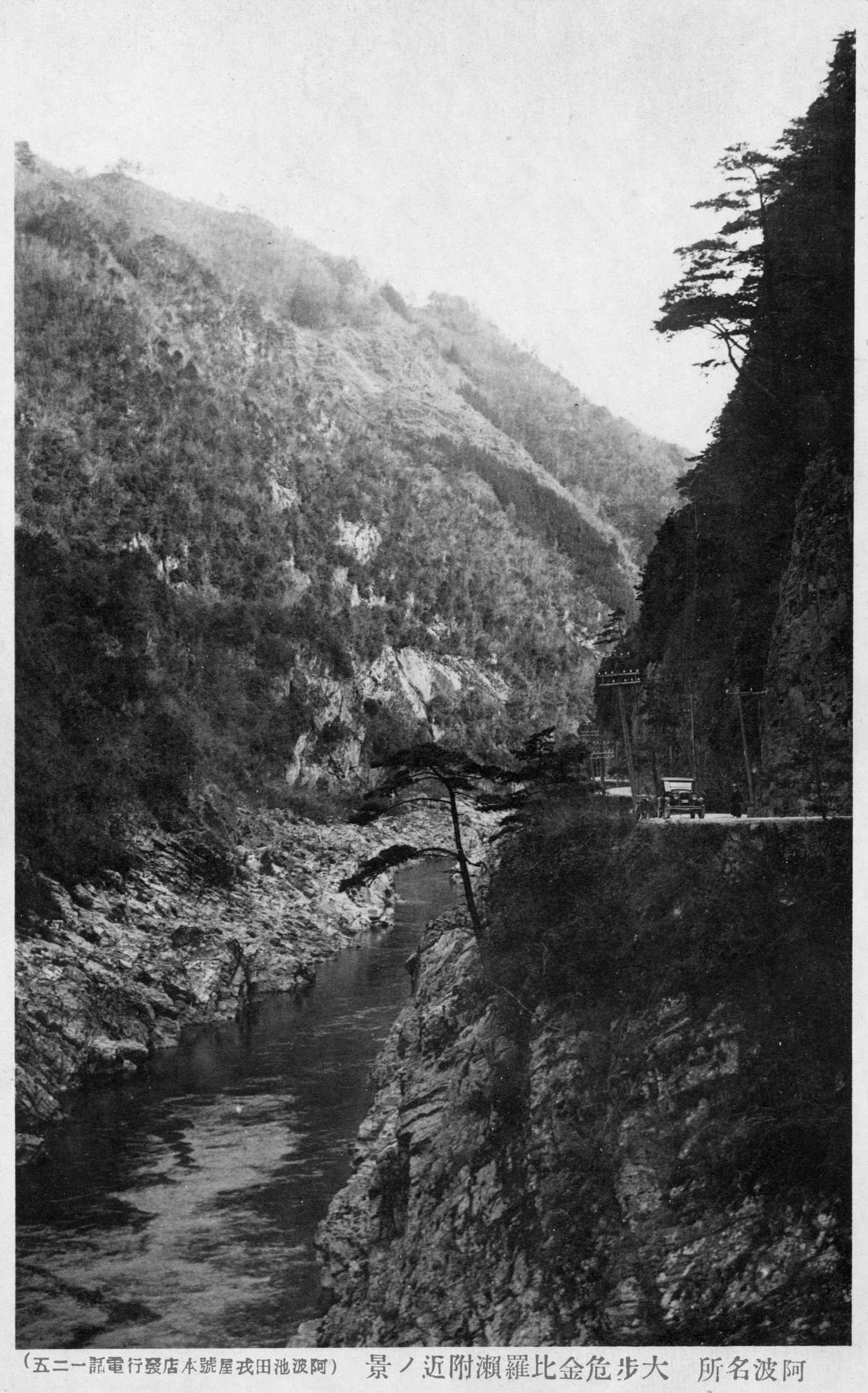 タイトル:『阿波名所 大歩危金比羅瀬附近ノ景(絵はがき)』