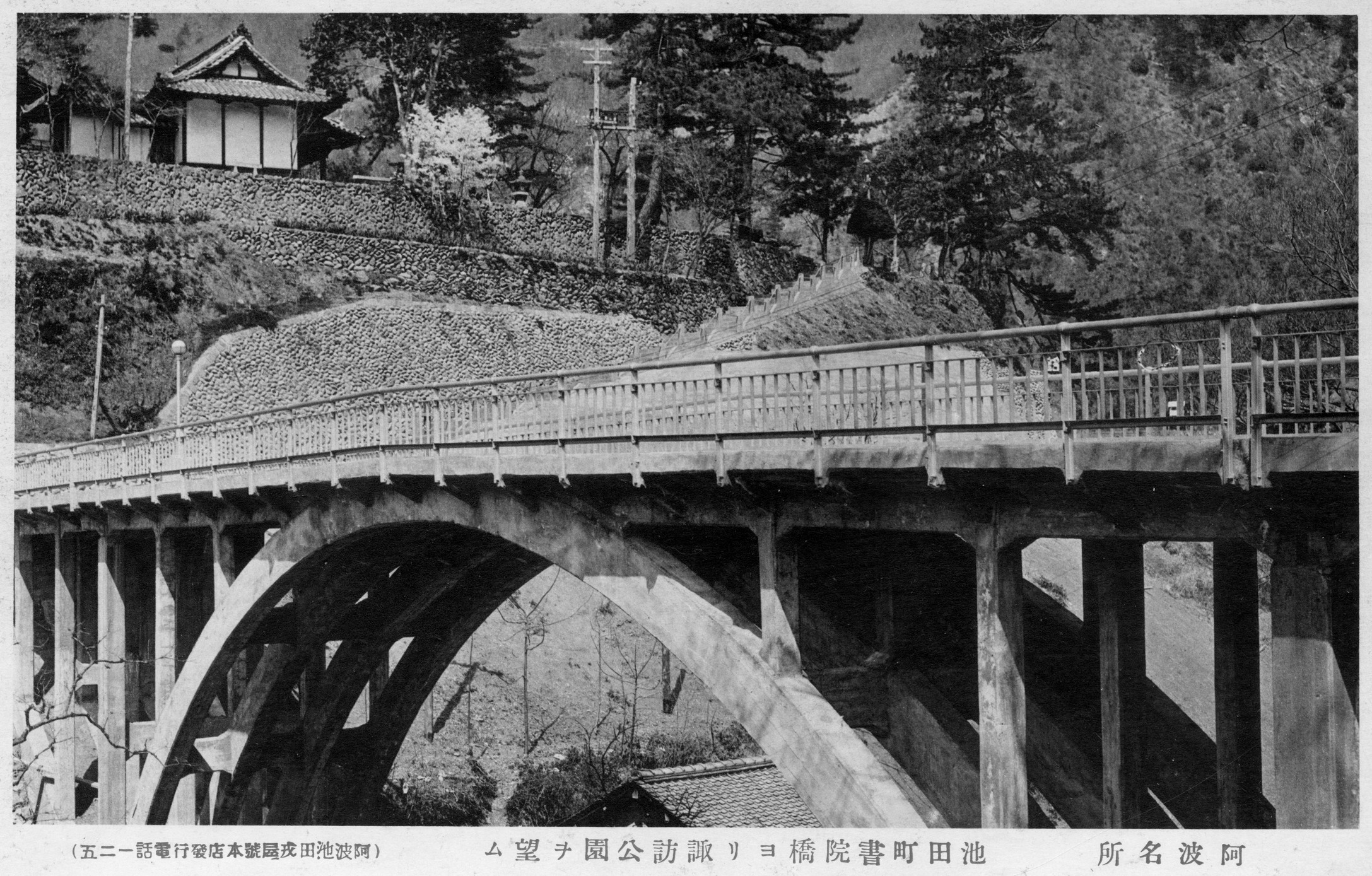 タイトル:『阿波名所 池田町書院橋ヨリ諏訪公園ヲ望ム(絵はがき)』