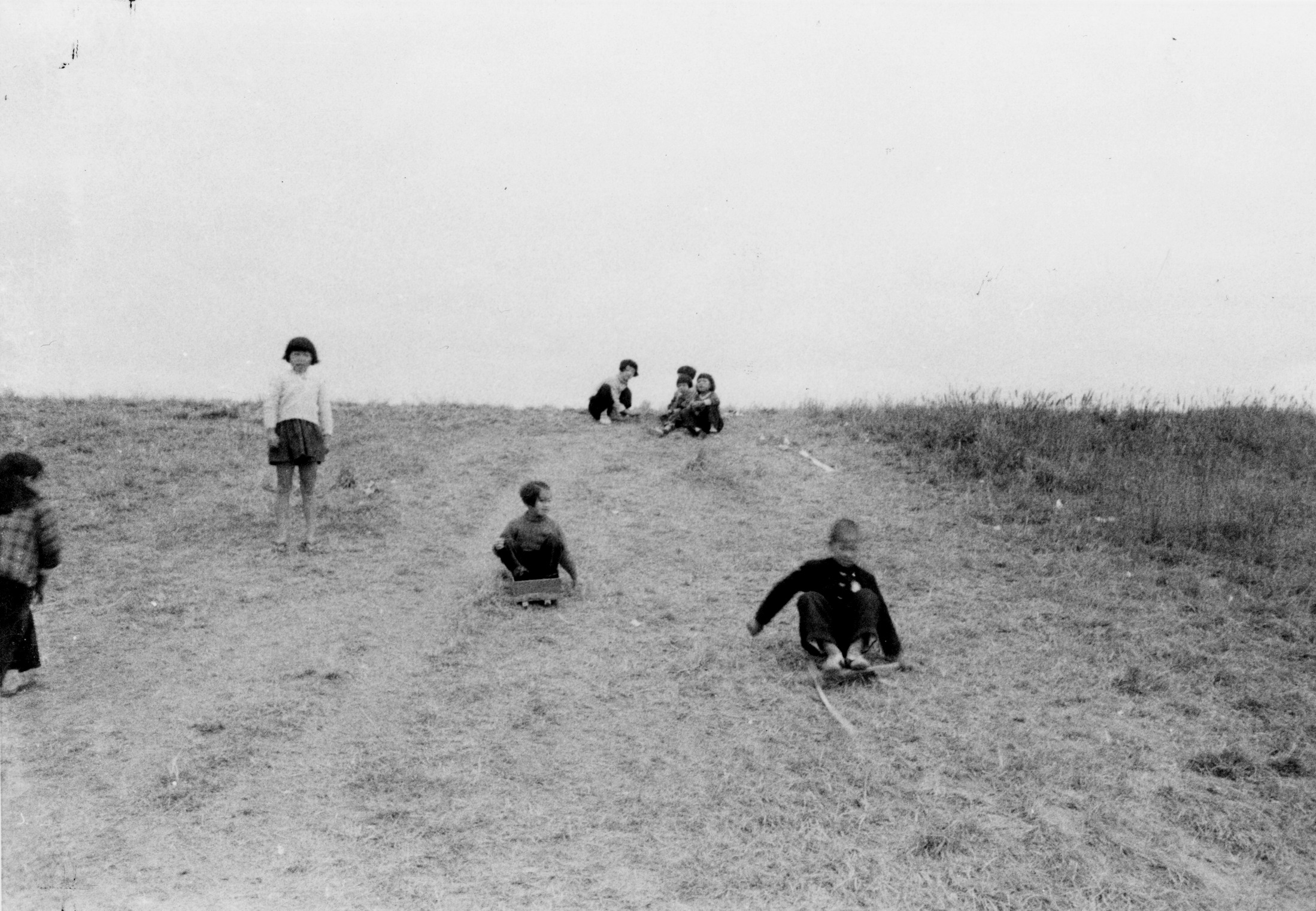 タイトル:『田宮町の吉野川堤防・こどもの遊び』