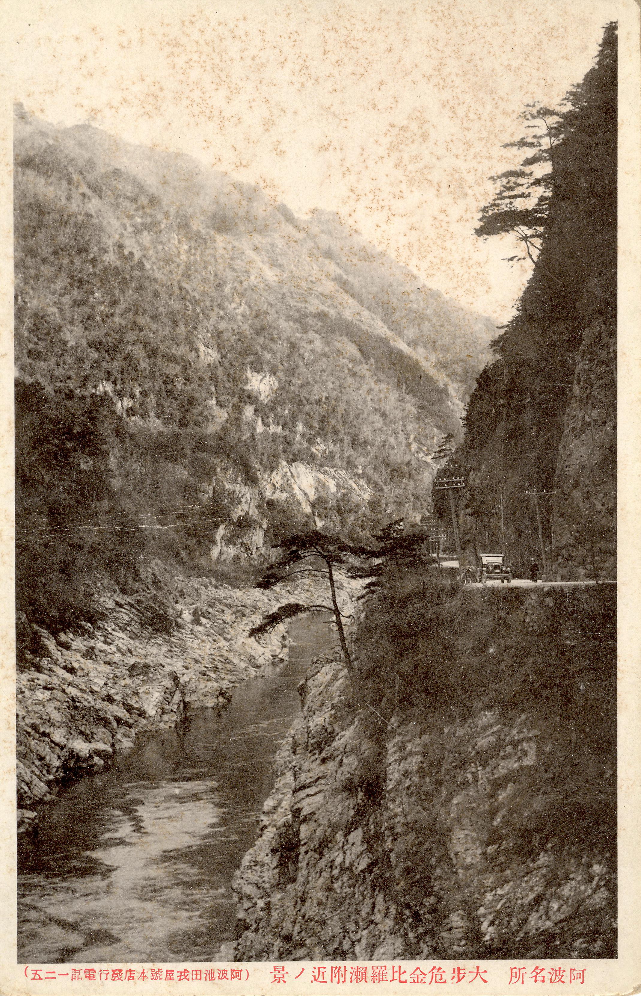 タイトル:『阿波名所 大歩危金比羅瀬附近の景』