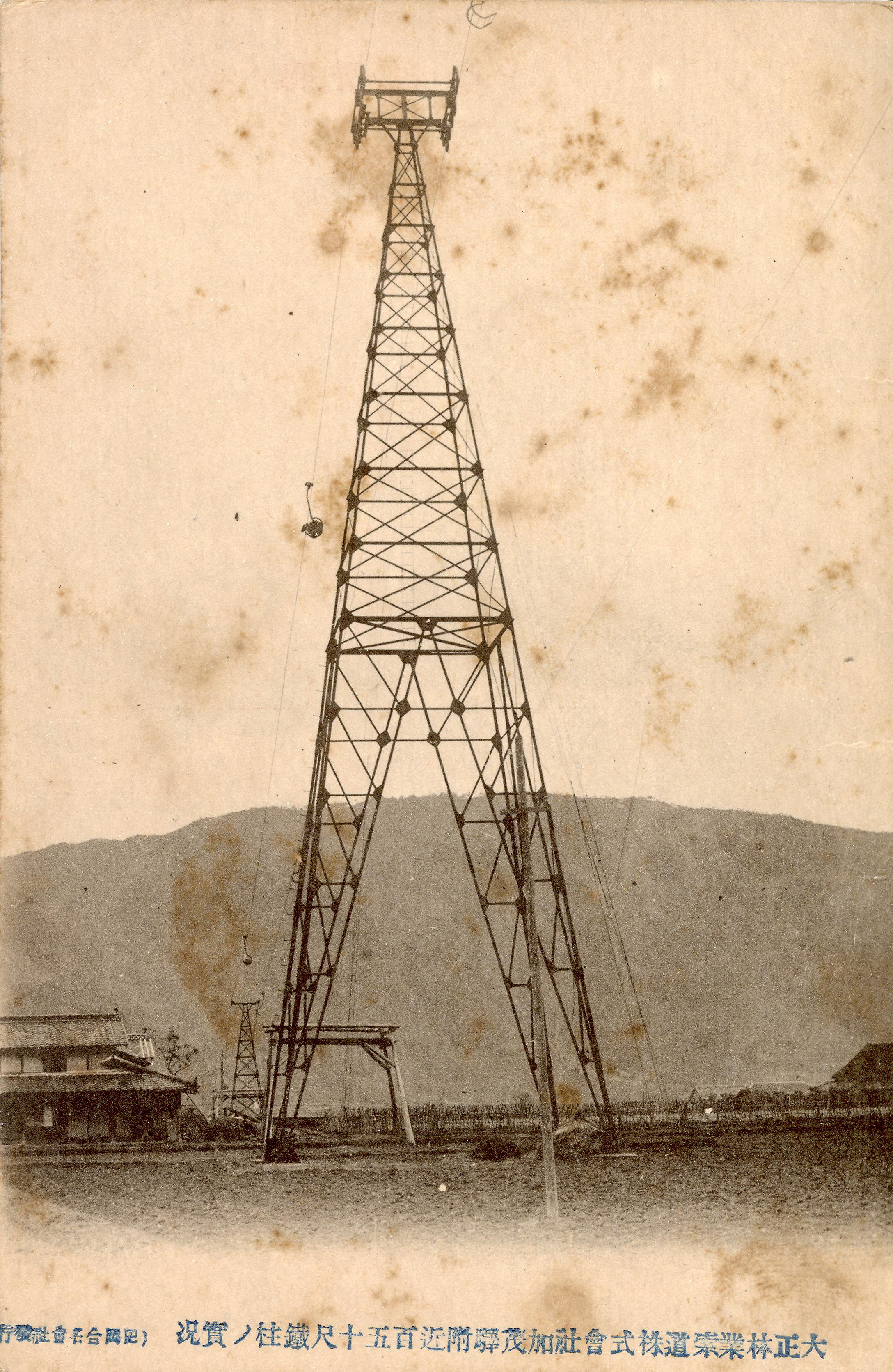 タイトル:『大正林業索道株式会社加茂駅附近百五十尺鉄柱の実況』