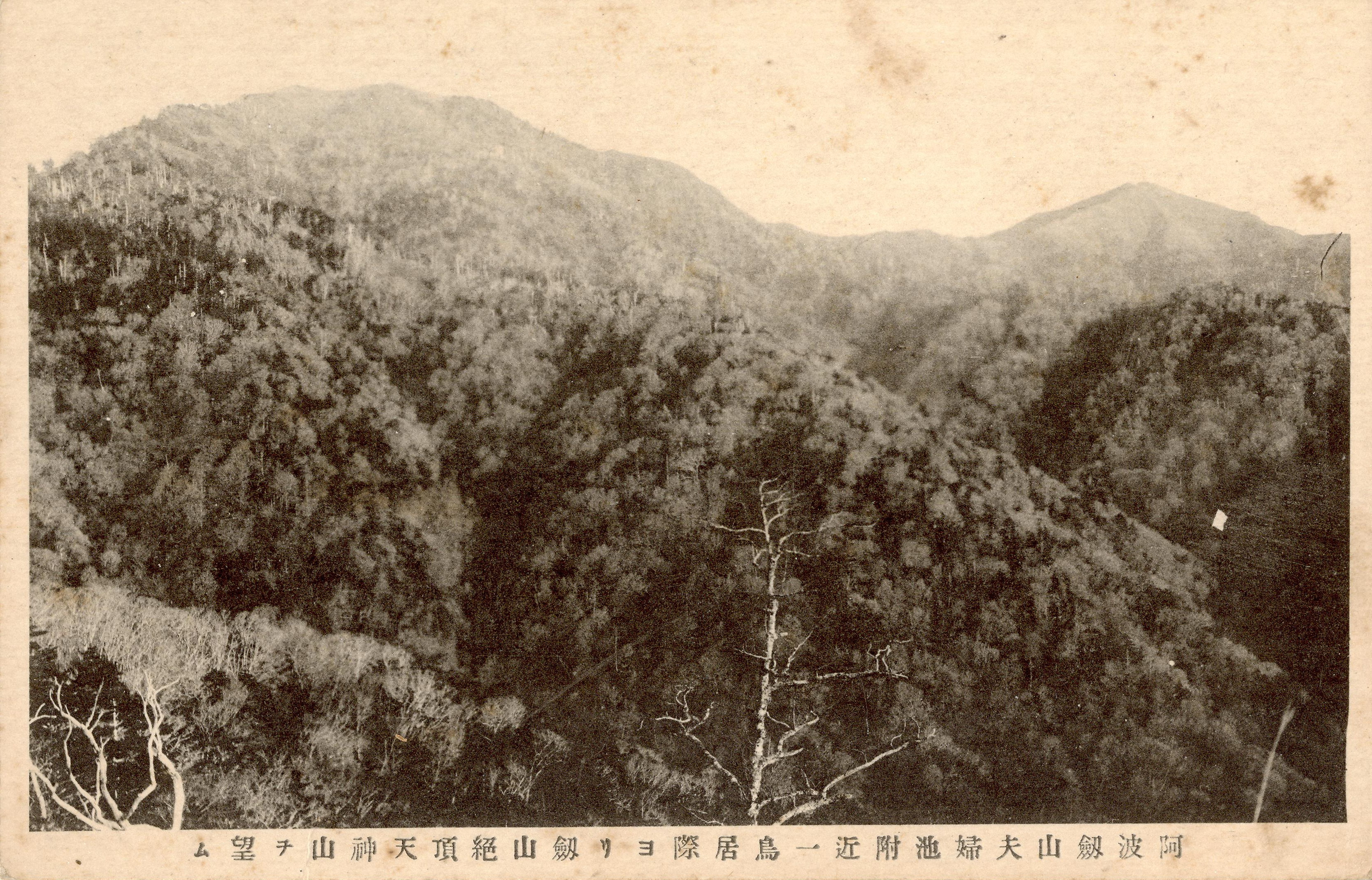タイトル:『阿波剣山夫婦池附近一鳥居際より剣山絶頂天人山を望む』