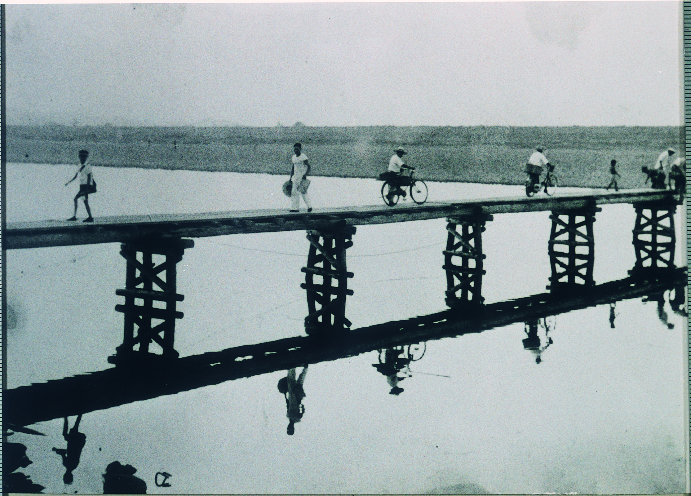 川島潜水橋のひとこま