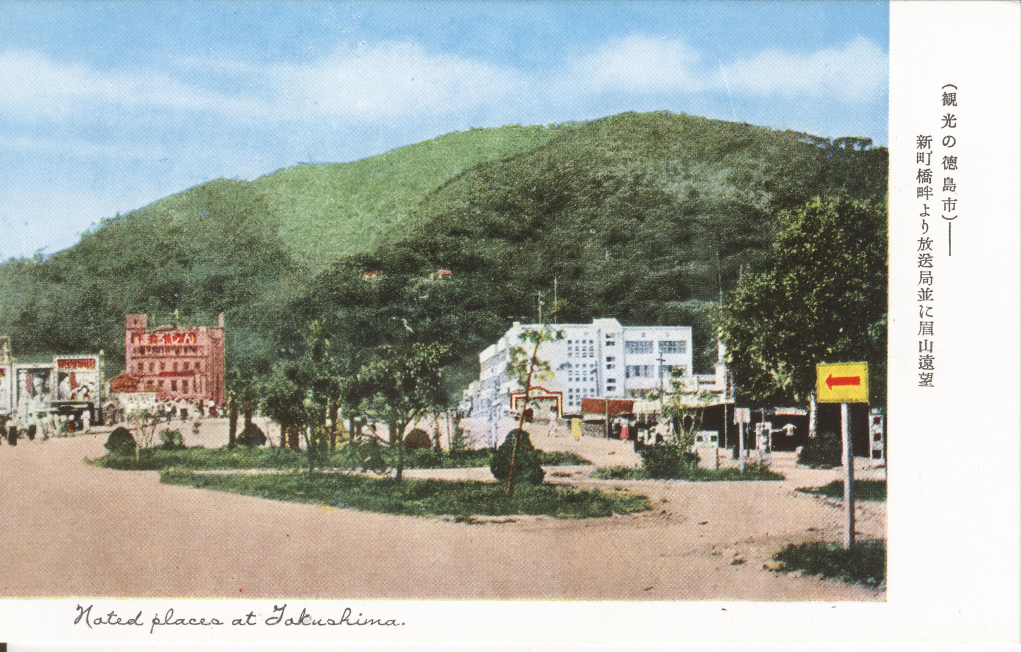 (観光の徳島市)新町橋畔より放送局並に眉山遠望