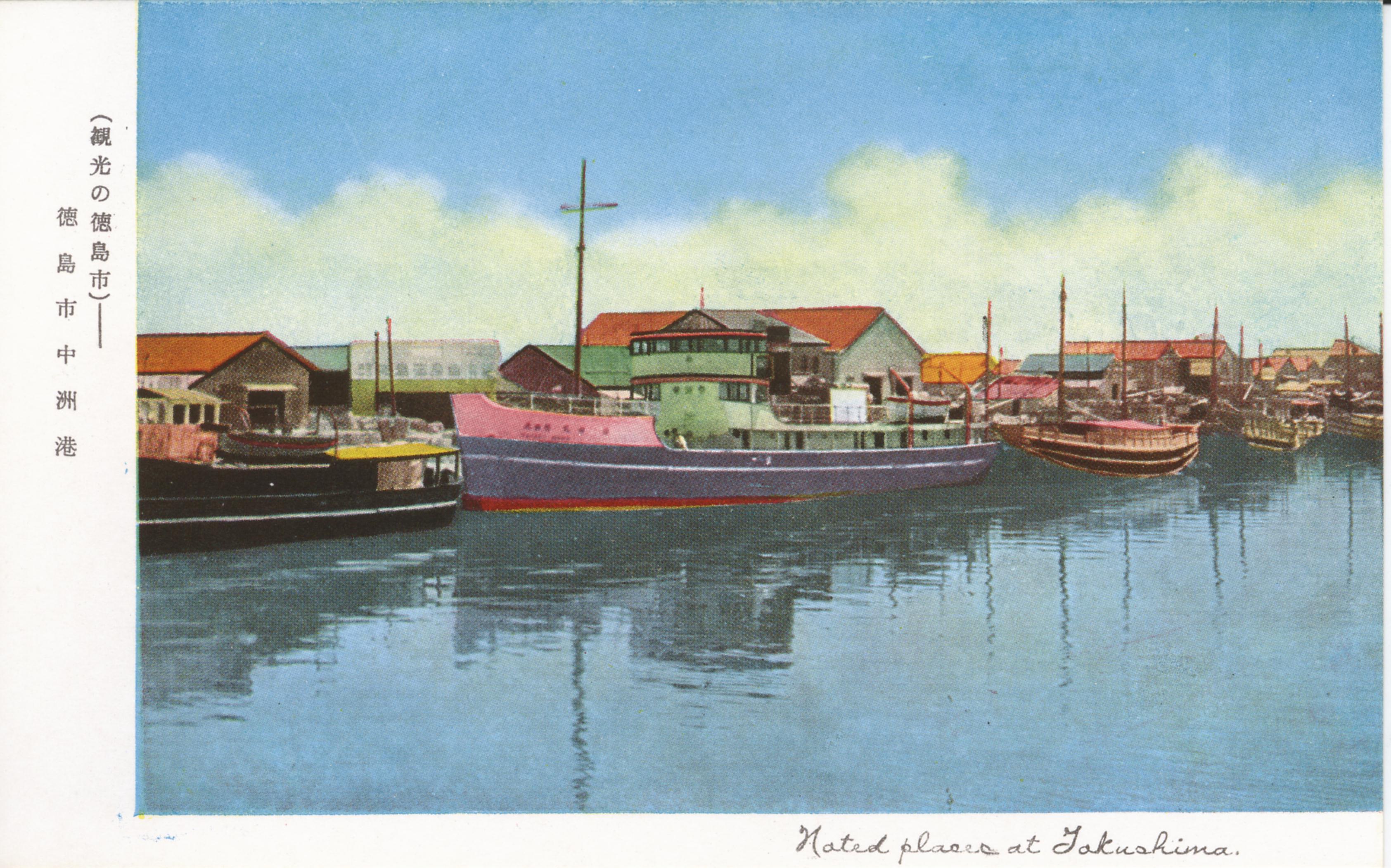 徳島市名所絵葉書 徳島市津田港