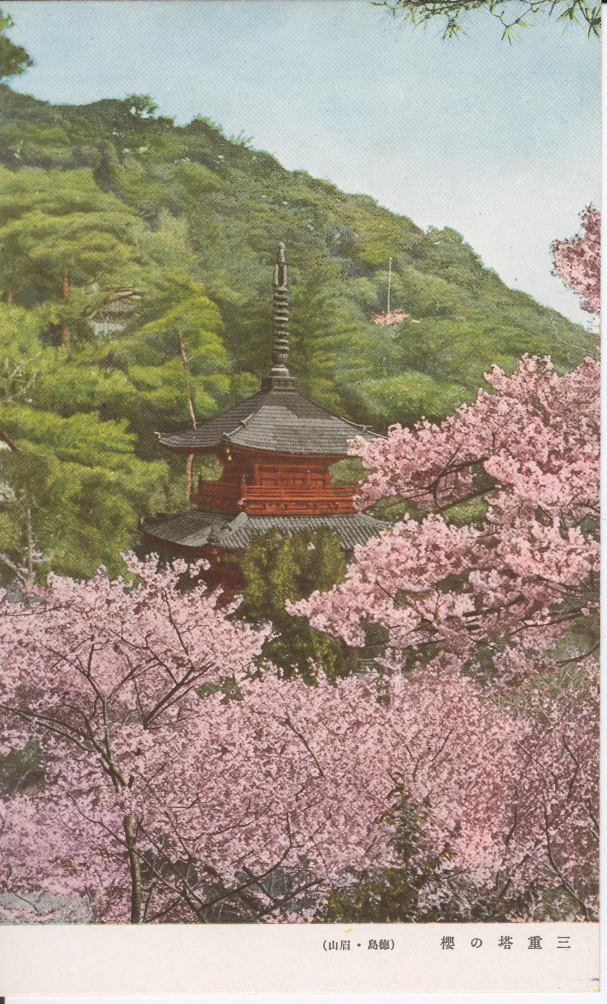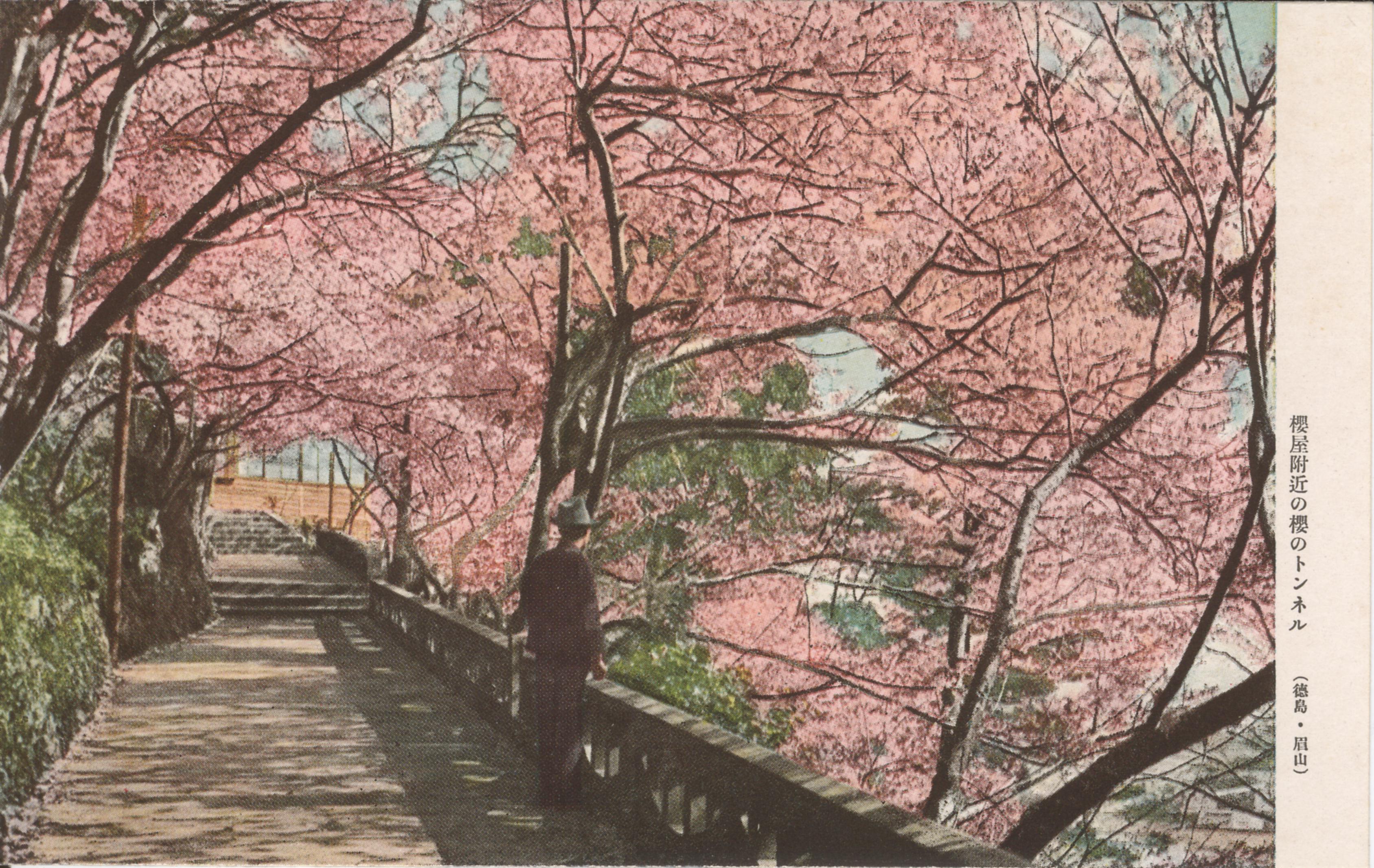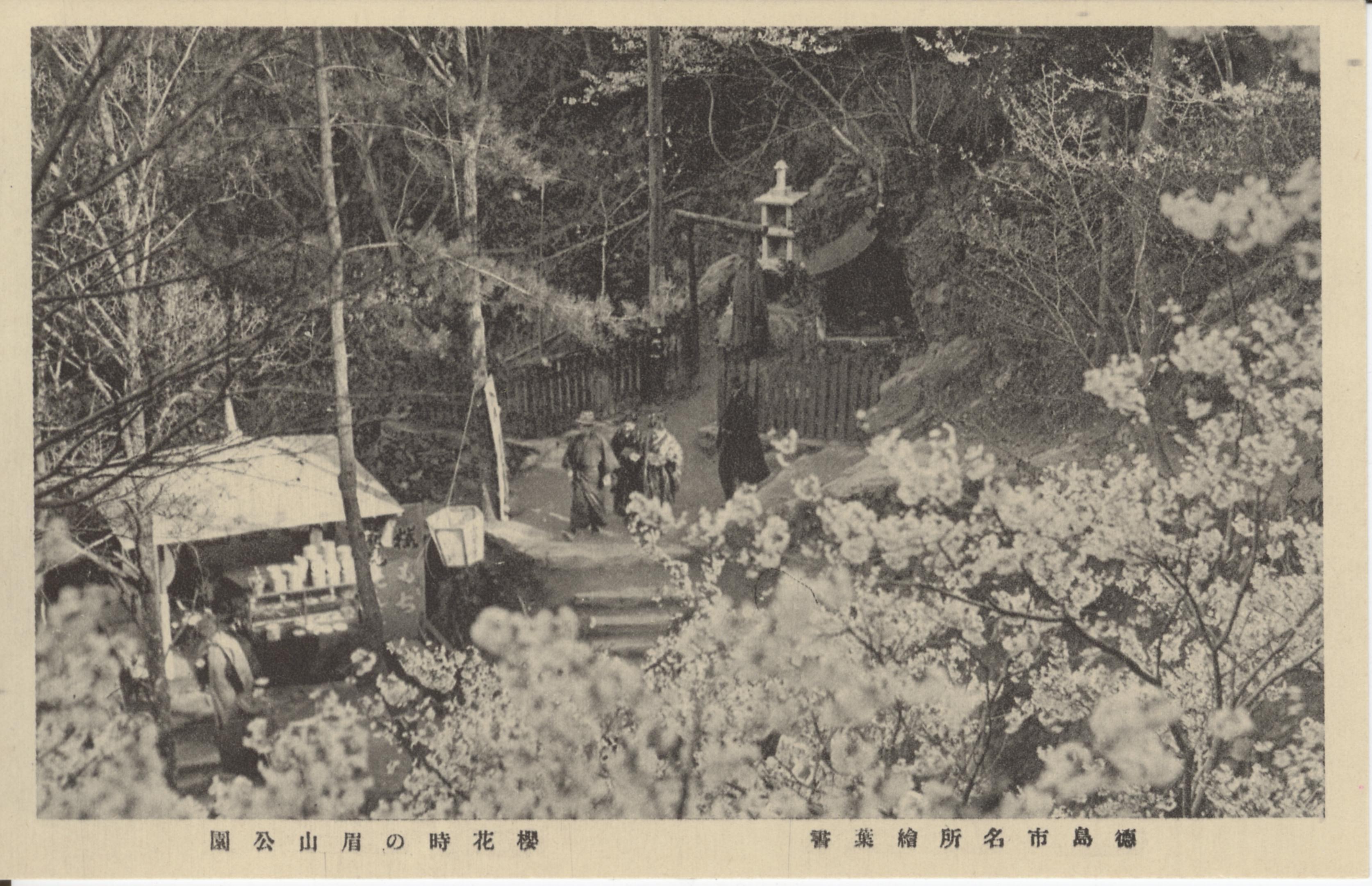 徳島市名所絵葉書 桜花時の眉山公園
