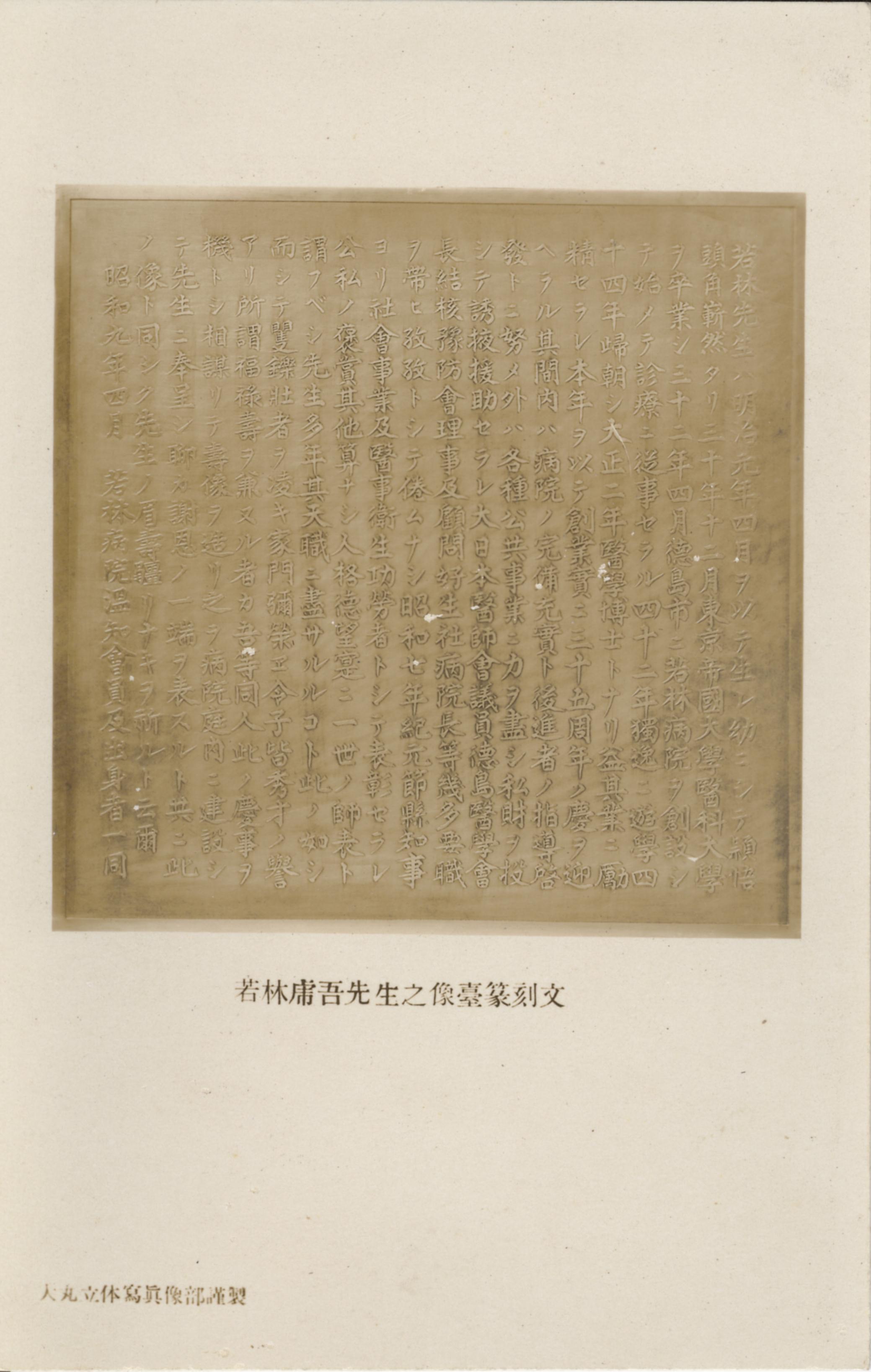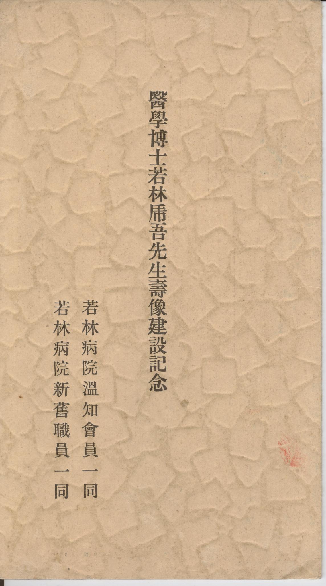 (医学博士若林乕吾先生寿像建設記念-袋)