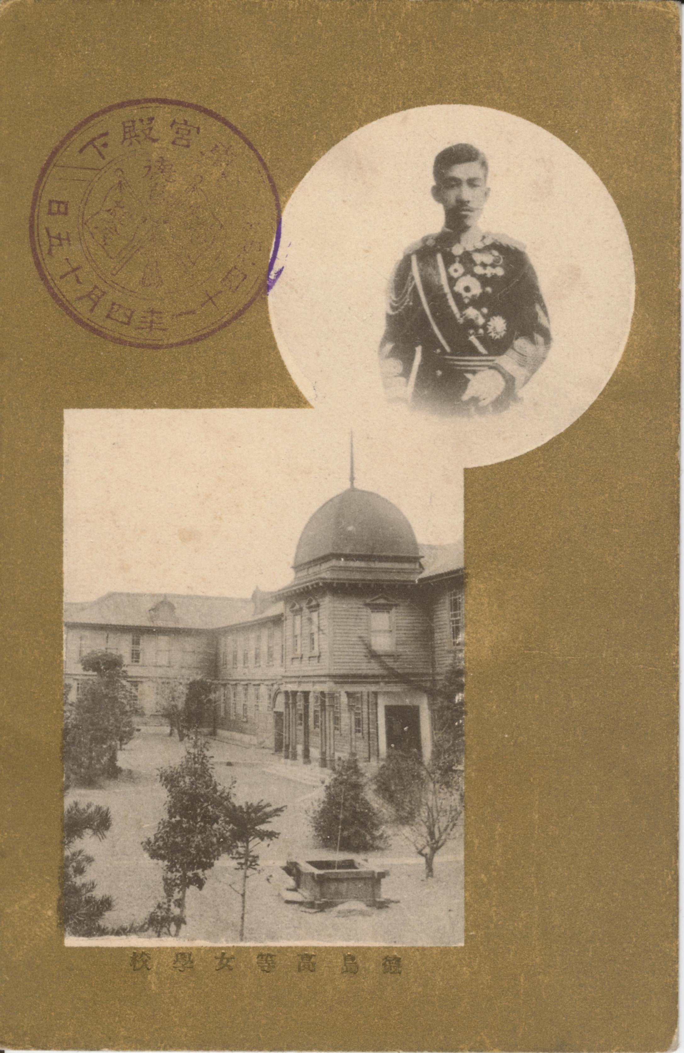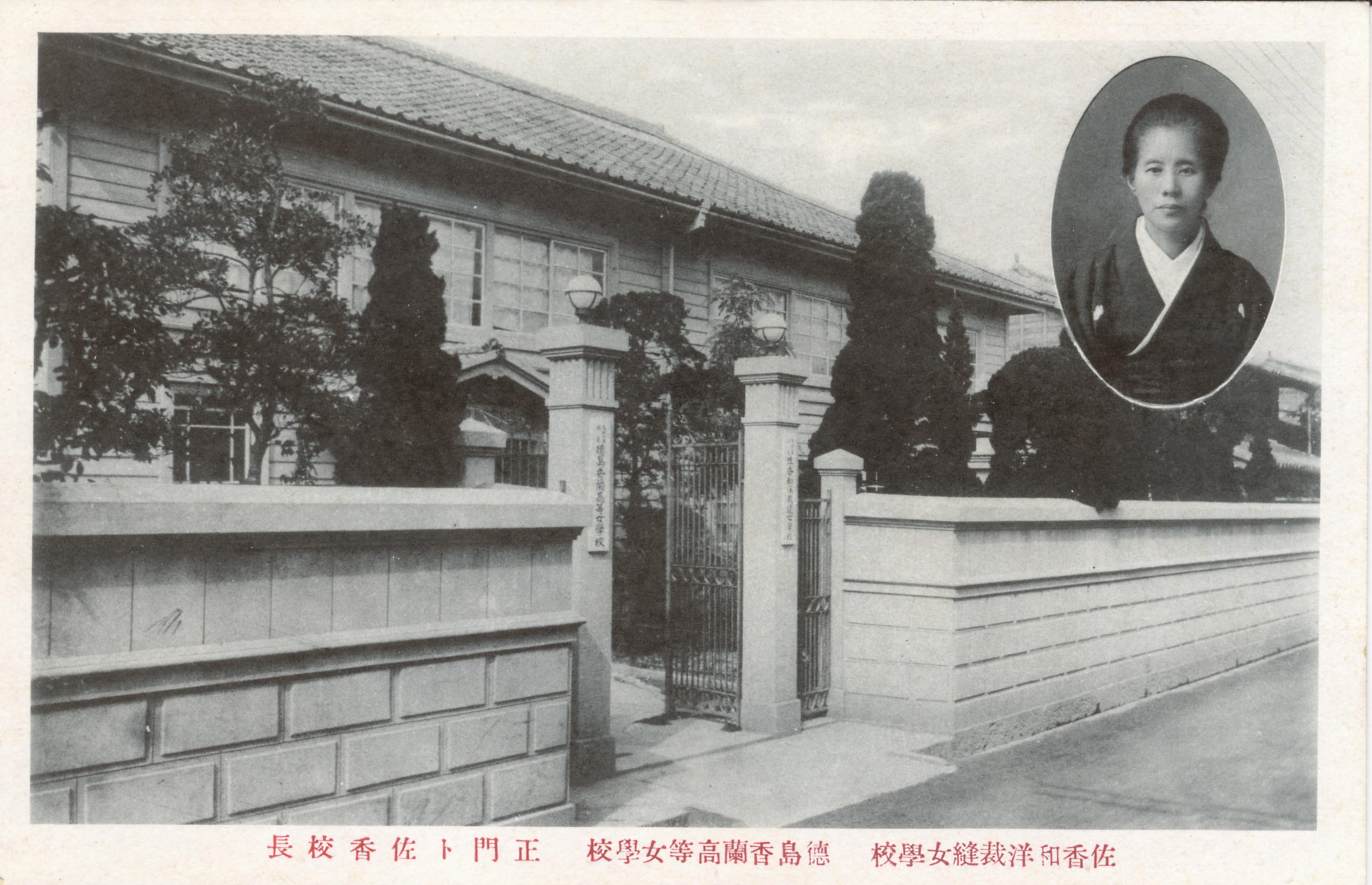 佐香和洋裁縫女学校 徳島香蘭高等女学校 正門ト佐香校長