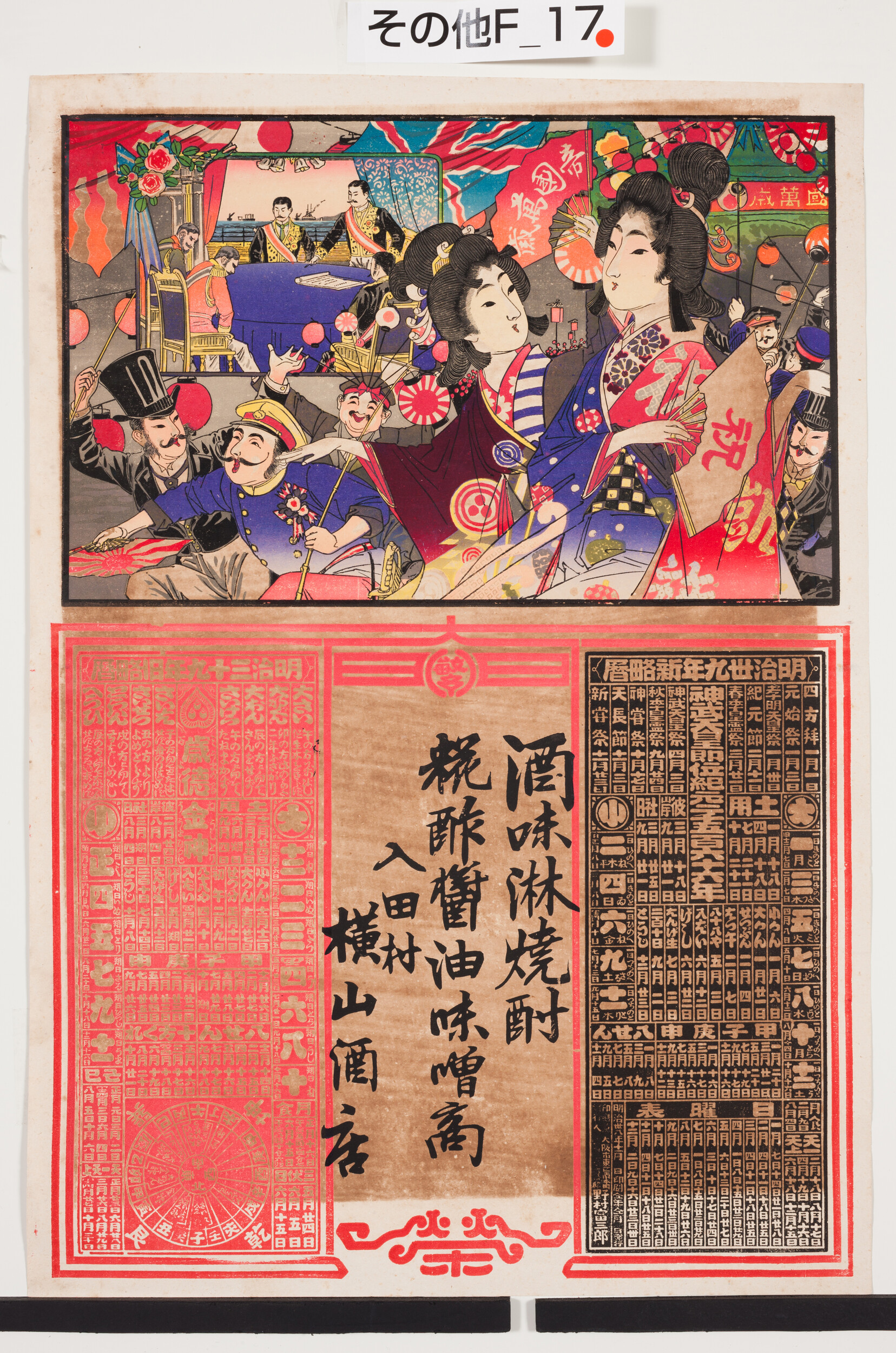 引札絵柄:糀酢醤油味噌商 明治39年新旧略歴あり 商店場所:入田村 商店名称:横山酒店 商売内容:酒味醂焼酎