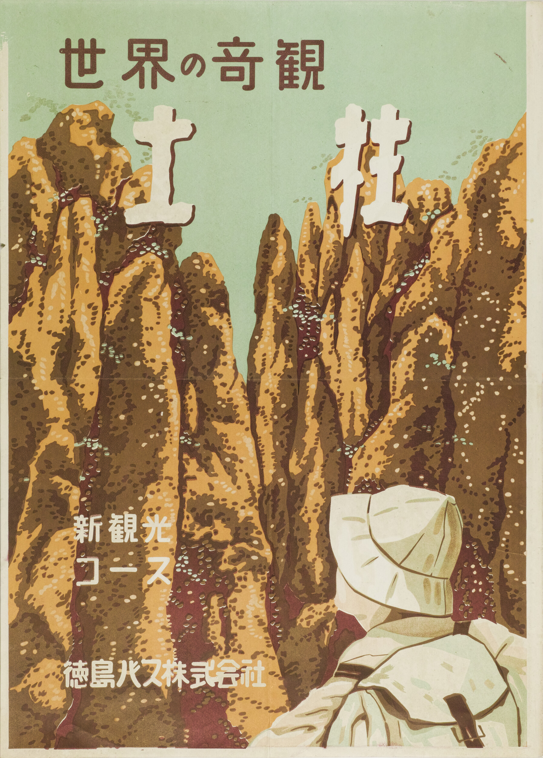 引札絵柄:世界の奇観 土柱 商店名称:徳島バス株式会社 商売内容:観光バス 新観光コース