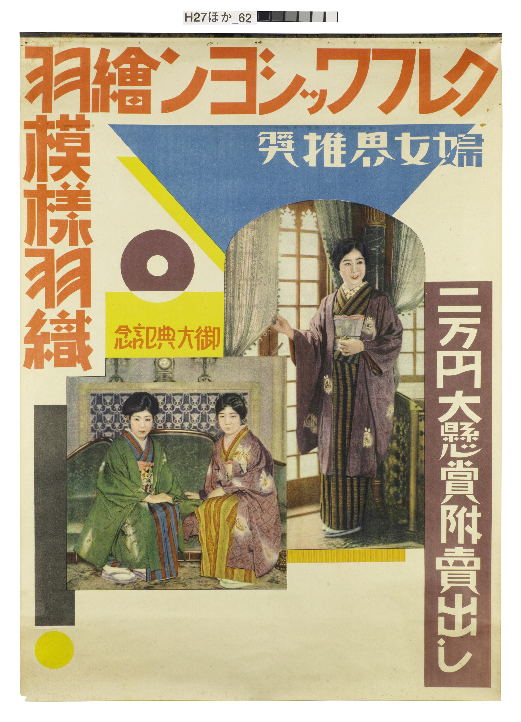 引札絵柄:クレフワッション絵羽模様羽織 婦女界推奨 御大典記念 二万円大懸賞付売出