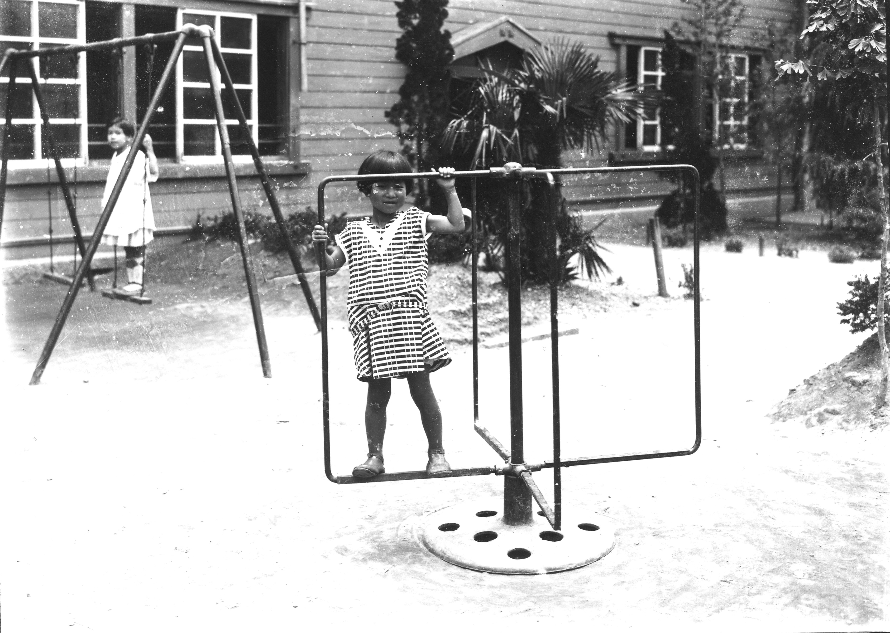遊具の前で