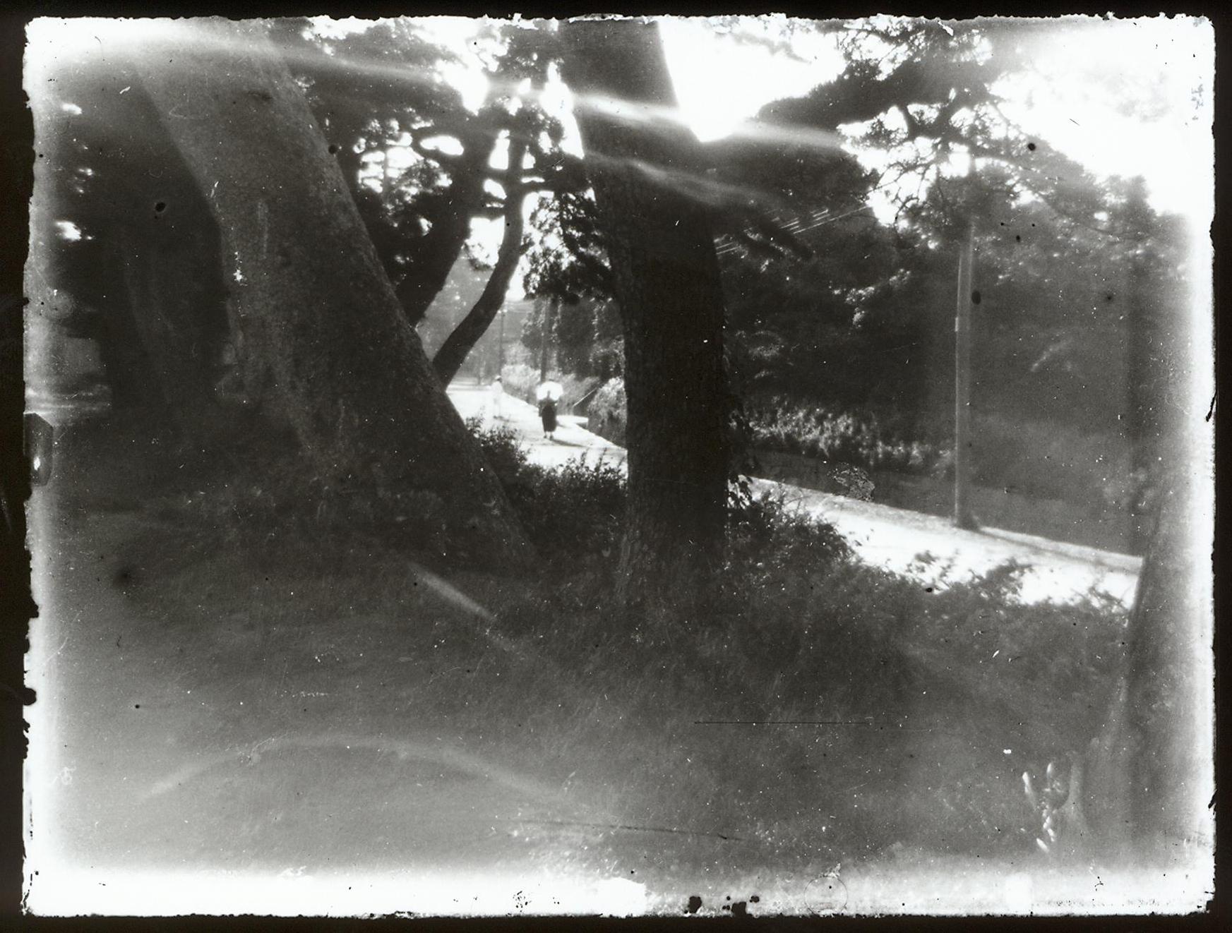 松並木と日傘の女性