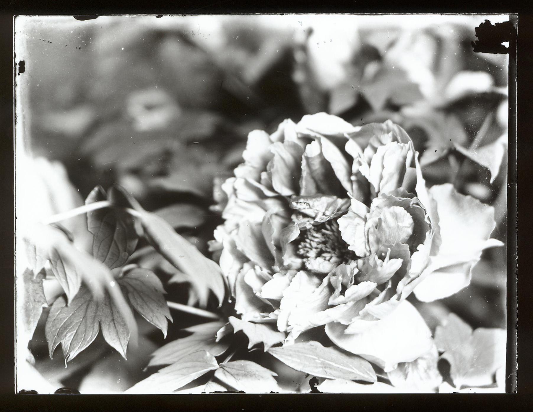 牡丹(芍薬?)と蛙