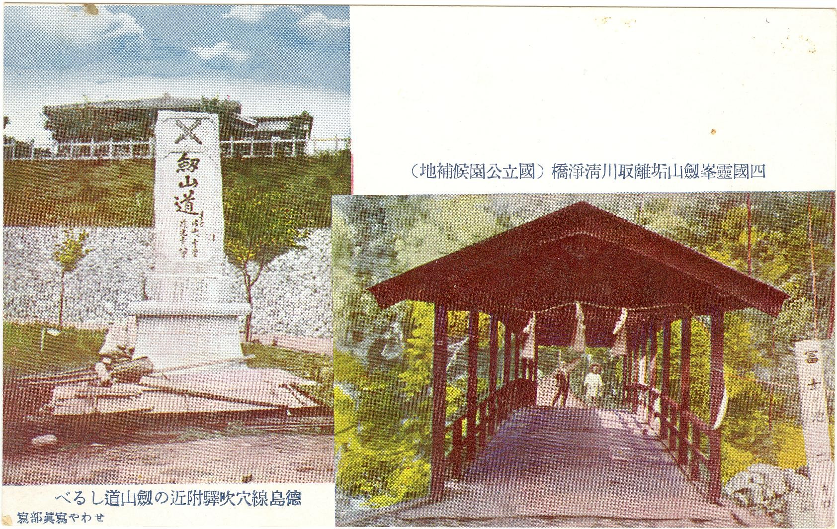 四国霊峰剣山垢離取川清浄橋、徳島線穴吹駅付近の剣山道しるべ