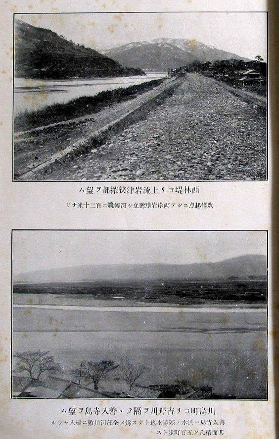 西林堤ヨリ上流岩津狭搾部ヲ望ム 川島町ヨリ吉野川ヲ隔テテ善入寺島ヲ望ム