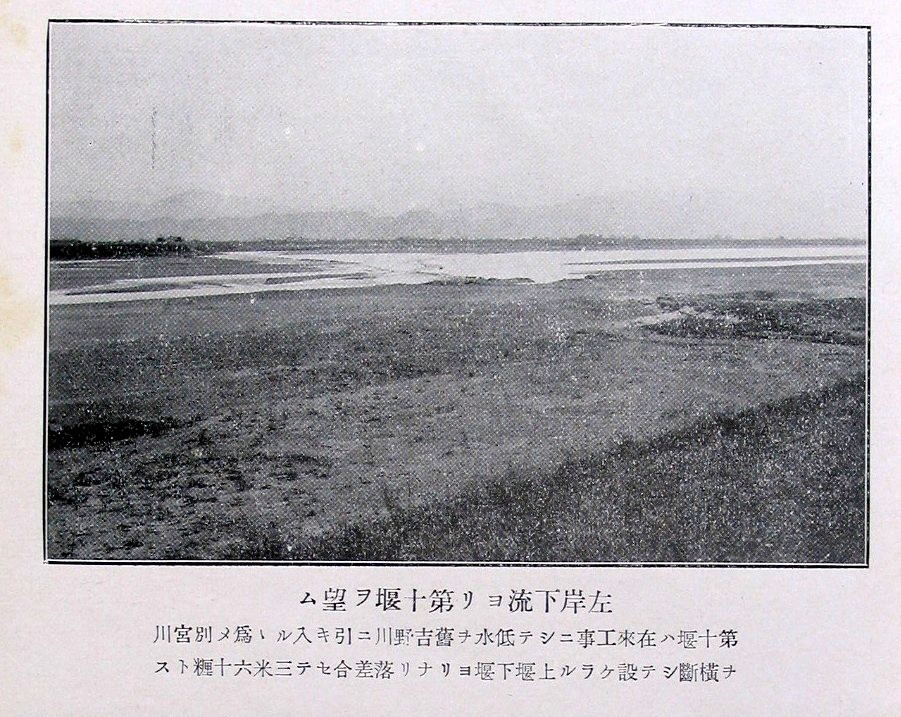 左岸下流ヨリ第十堰ヲ望ム