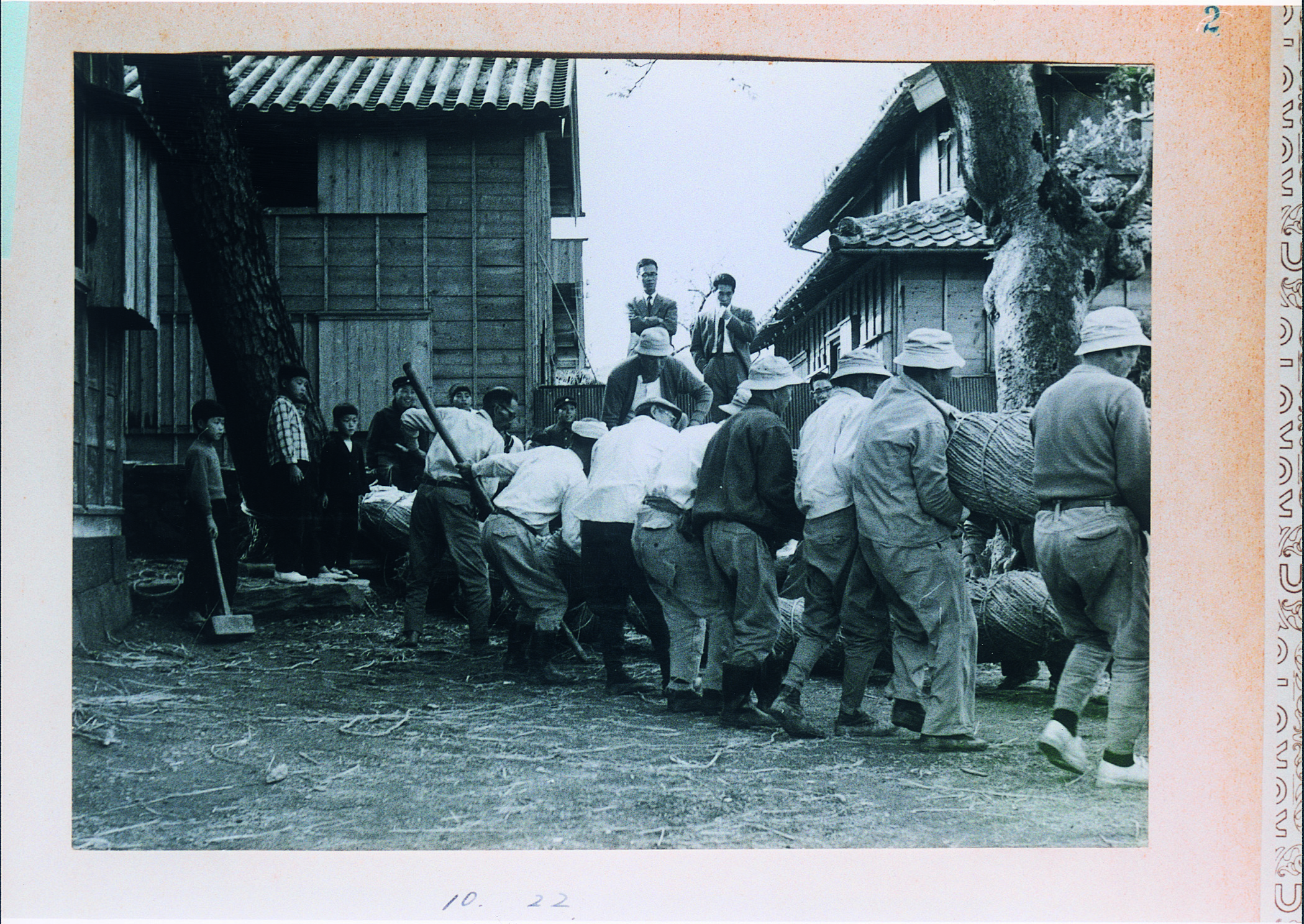 沖浜 金刀比羅神社の「おしめ作り」 (若宮神社で作って大八車で奉納した)