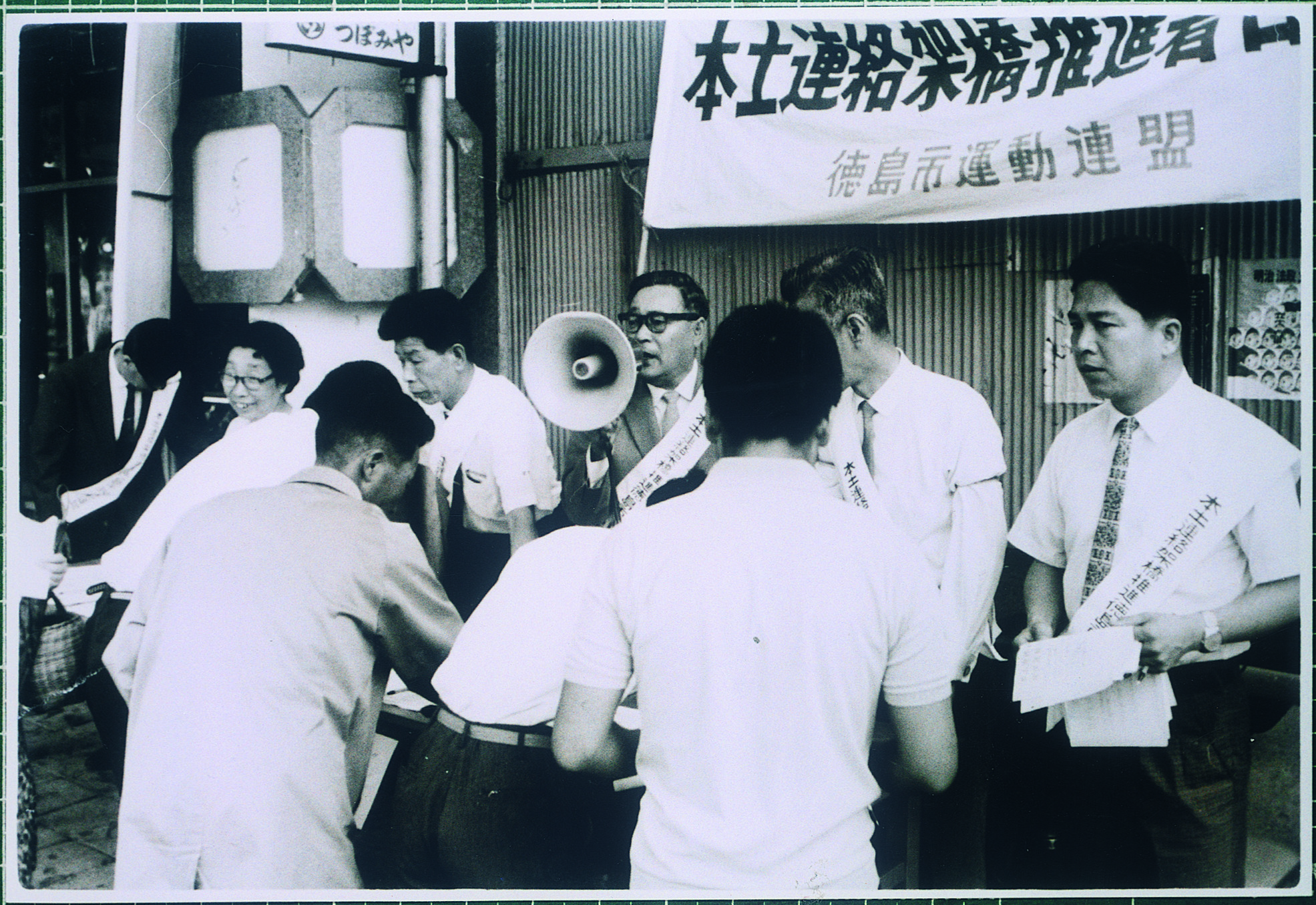 徳島駅前にて、本土連絡架橋推進街頭署名の様子