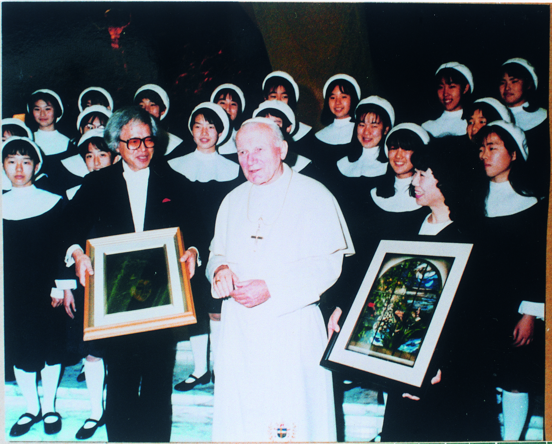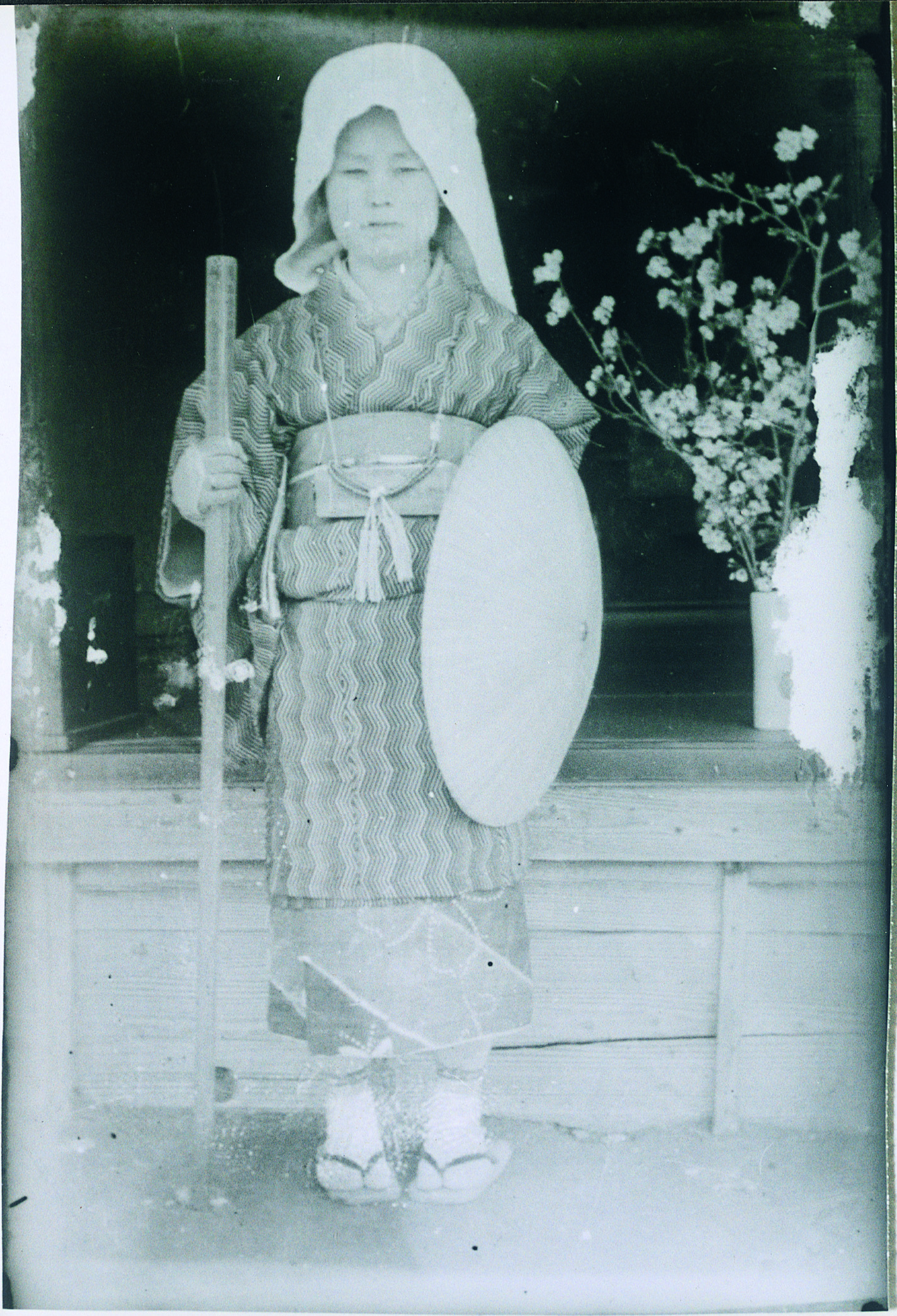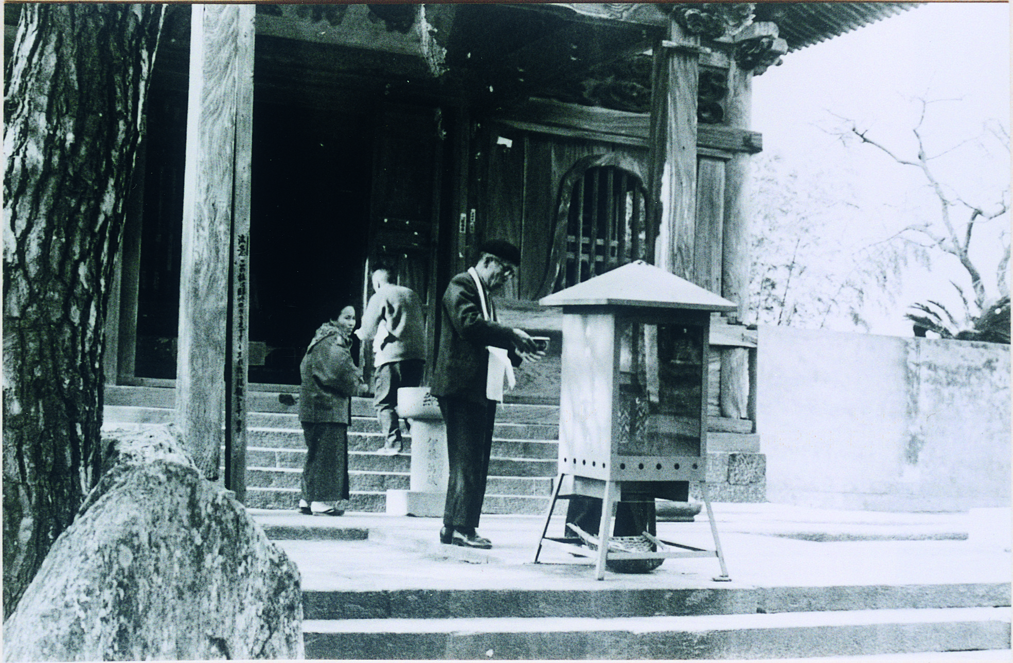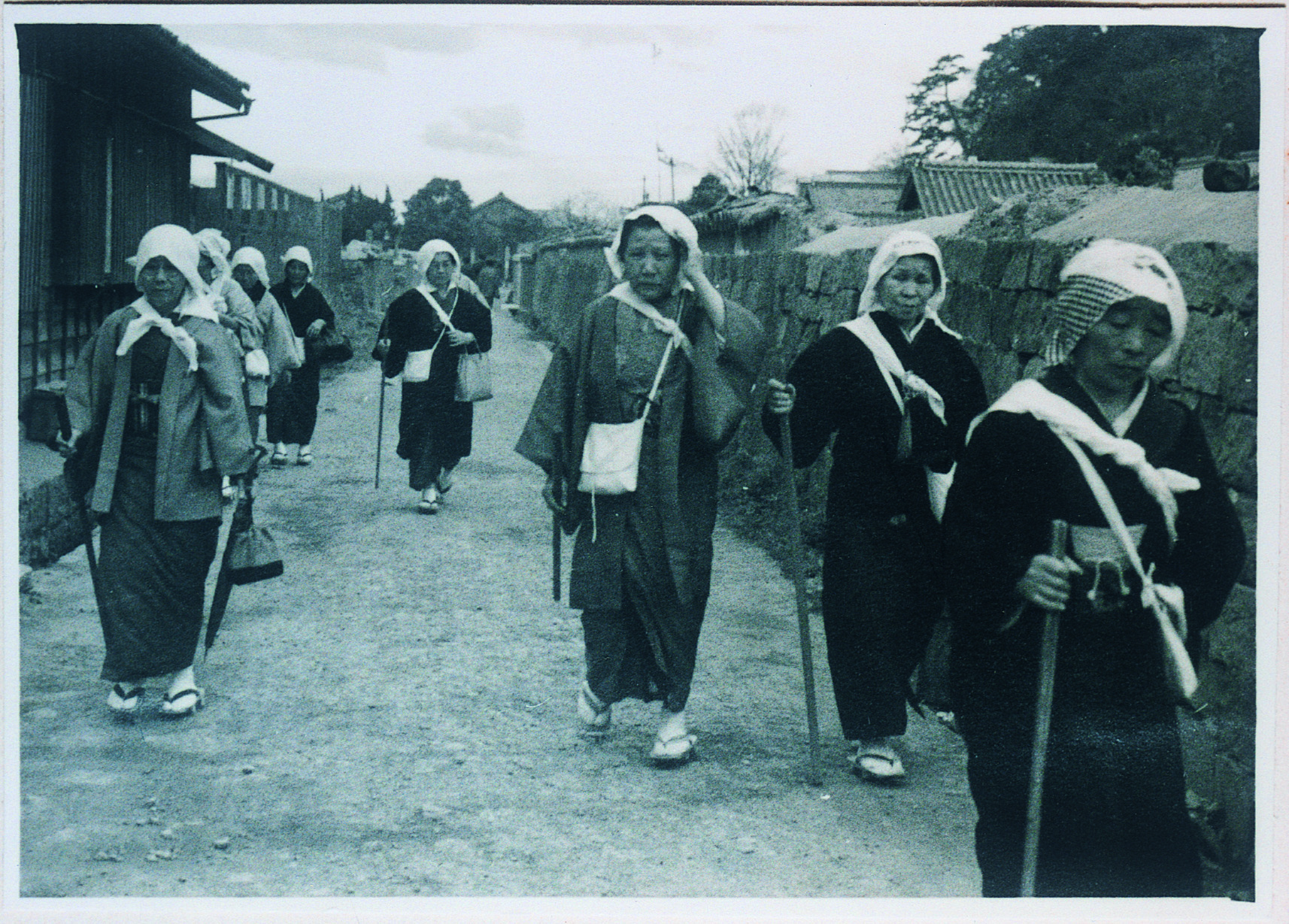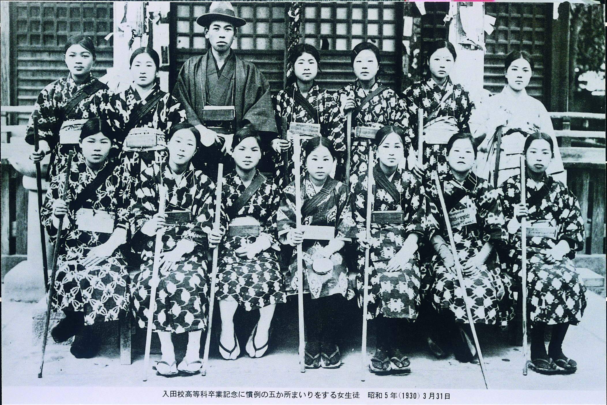 入田校高等科卒業記念に慣例の五カ所まいりをする女生徒