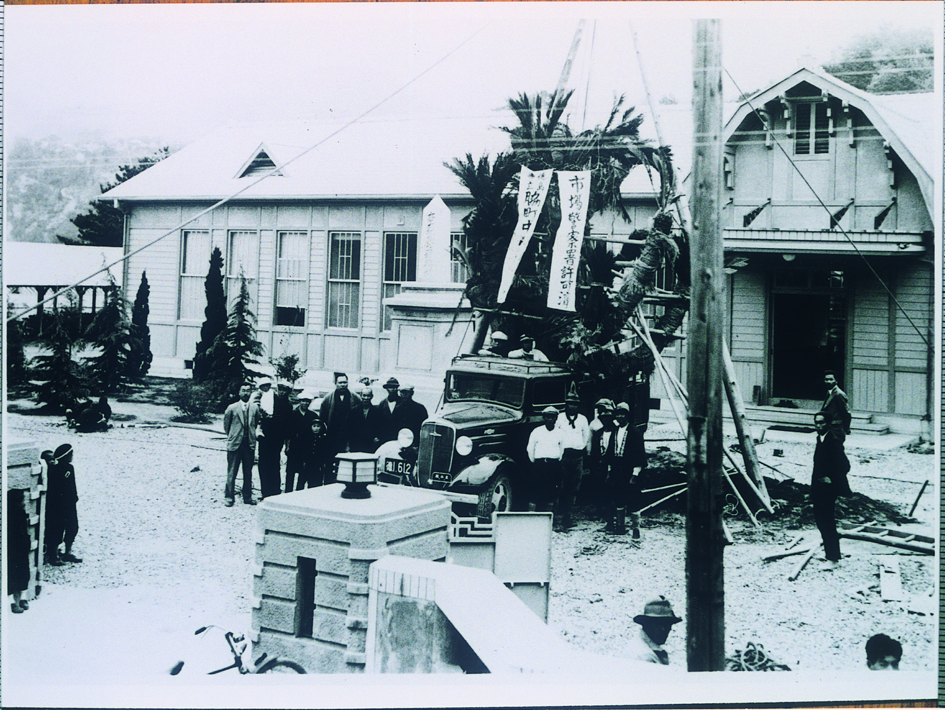 脇中卒業写真(卒業記念に正門前に蘇鉄を植えた)