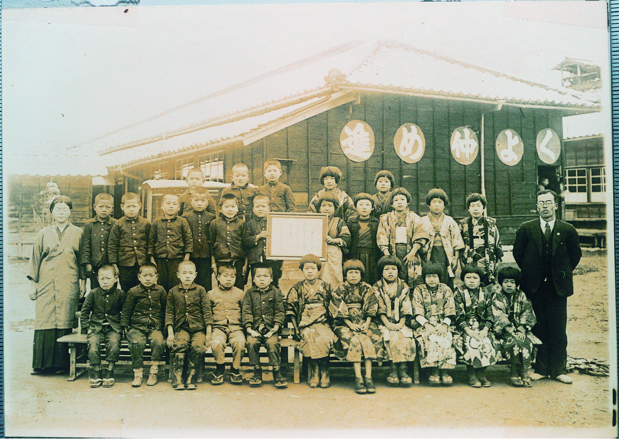 古見小 高等科卒業写真 中央に神主